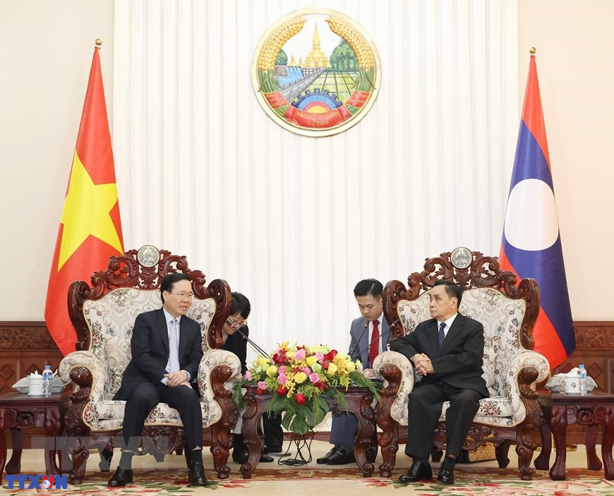 Chủ tịch nước Võ Văn Thưởng gửi lời thăm hỏi tới nguyên Tổng Bí thư, Chủ tịch nước Lào Choummaly Sayasone. (Ảnh: Thống Nhất/TTXVN)
