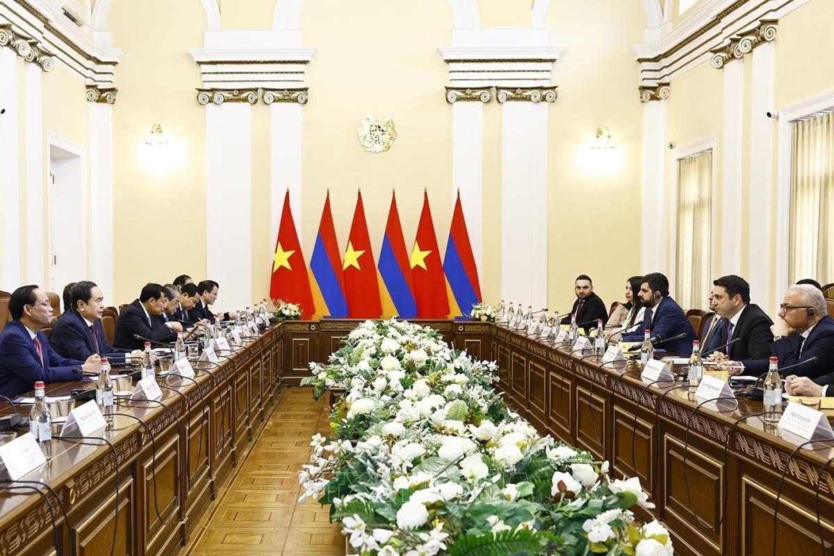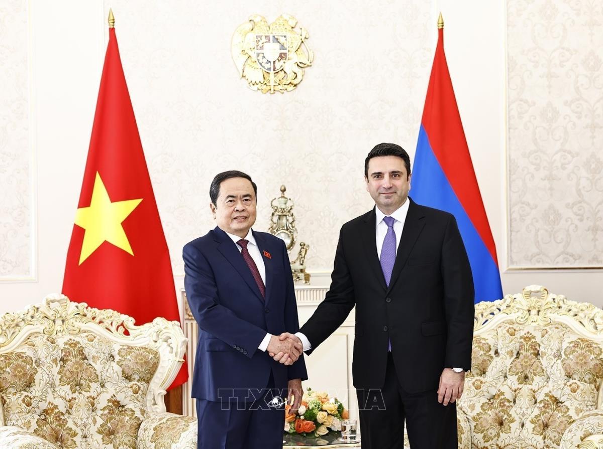 Chủ tịch Quốc hội Trần Thanh Mẫn hội đàm với Chủ tịch Quốc hội Armenia Alen Simonyan (3/4/2025). Ảnh: Doãn Tấn - TTXVN