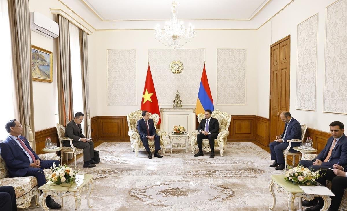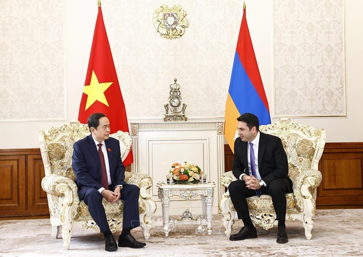 Chủ tịch Quốc hội Trần Thanh Mẫn gặp riêng với Chủ tịch Quốc hội Armenia Alen Simonyan (3/4/2025). Ảnh: Doãn Tấn - TTXVN