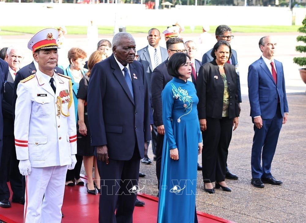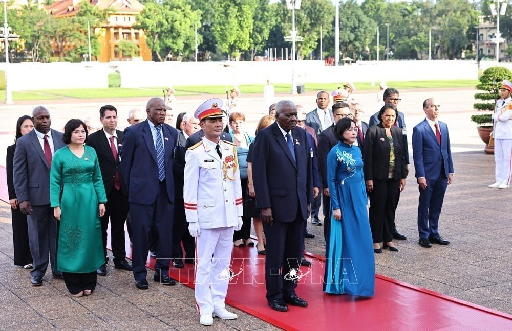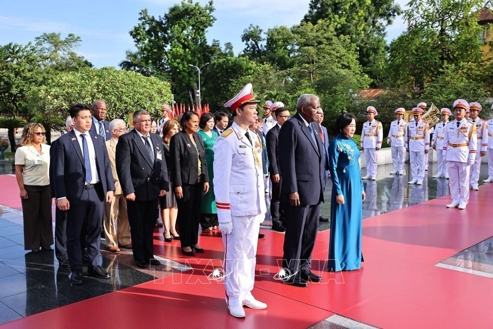 Chiều 1/10/2025, tại Hà Nội, Chủ tịch Quốc hội Cuba Esteban Lazo Hernández đến đặt vòng hoa tại Đài tưởng niệm các Anh hùng liệt sĩ trên đường Bắc Sơn, Hà Nội; đặt vòng hoa và vào Lăng viếng Chủ tịch Hồ Chí Minh.