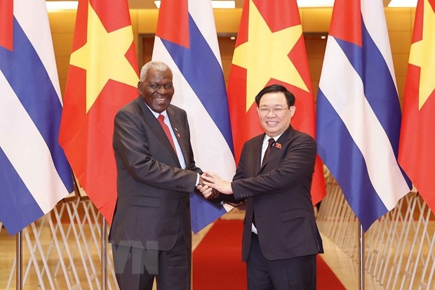 Chủ tịch Quốc hội Vương Đình Huệ và Chủ tịch Quốc hội Cuba Esteban Lazo Hernandez. (Ảnh: Doãn Tấn/ TTXVN)