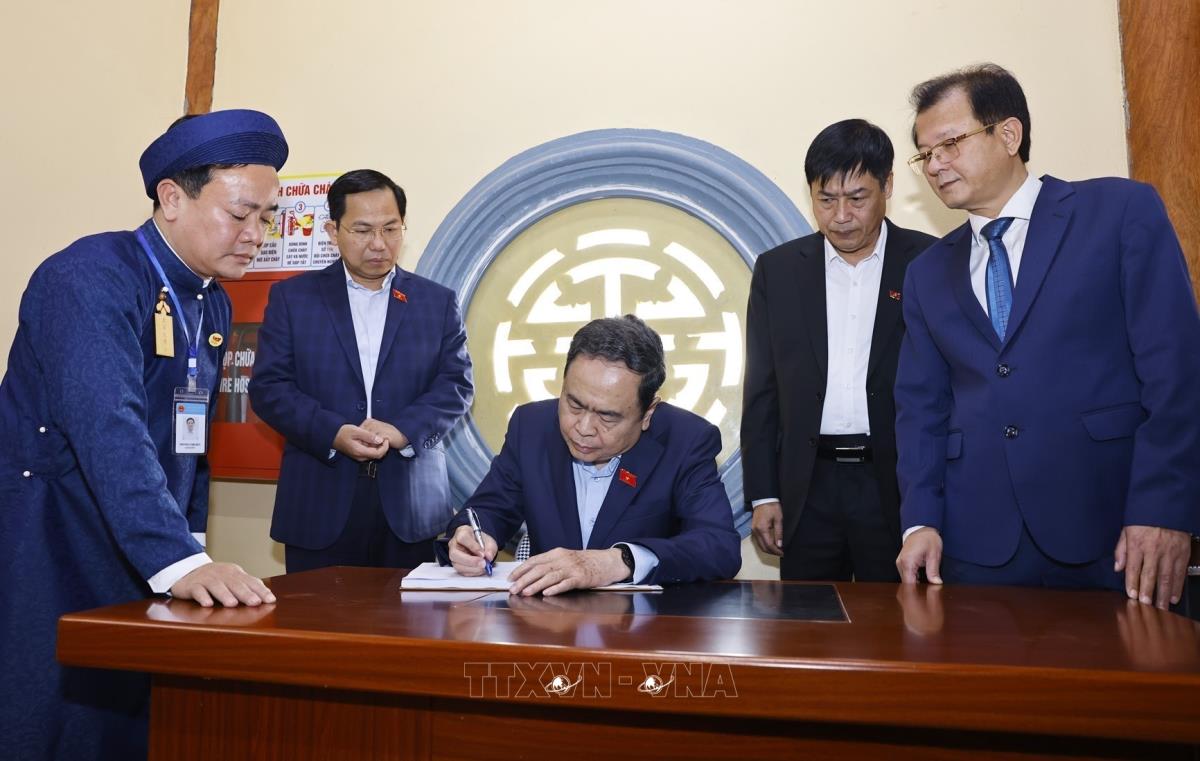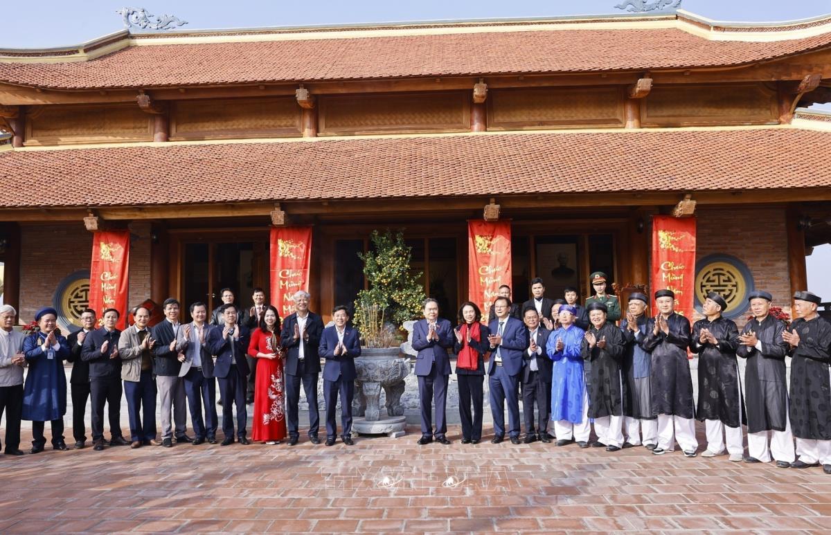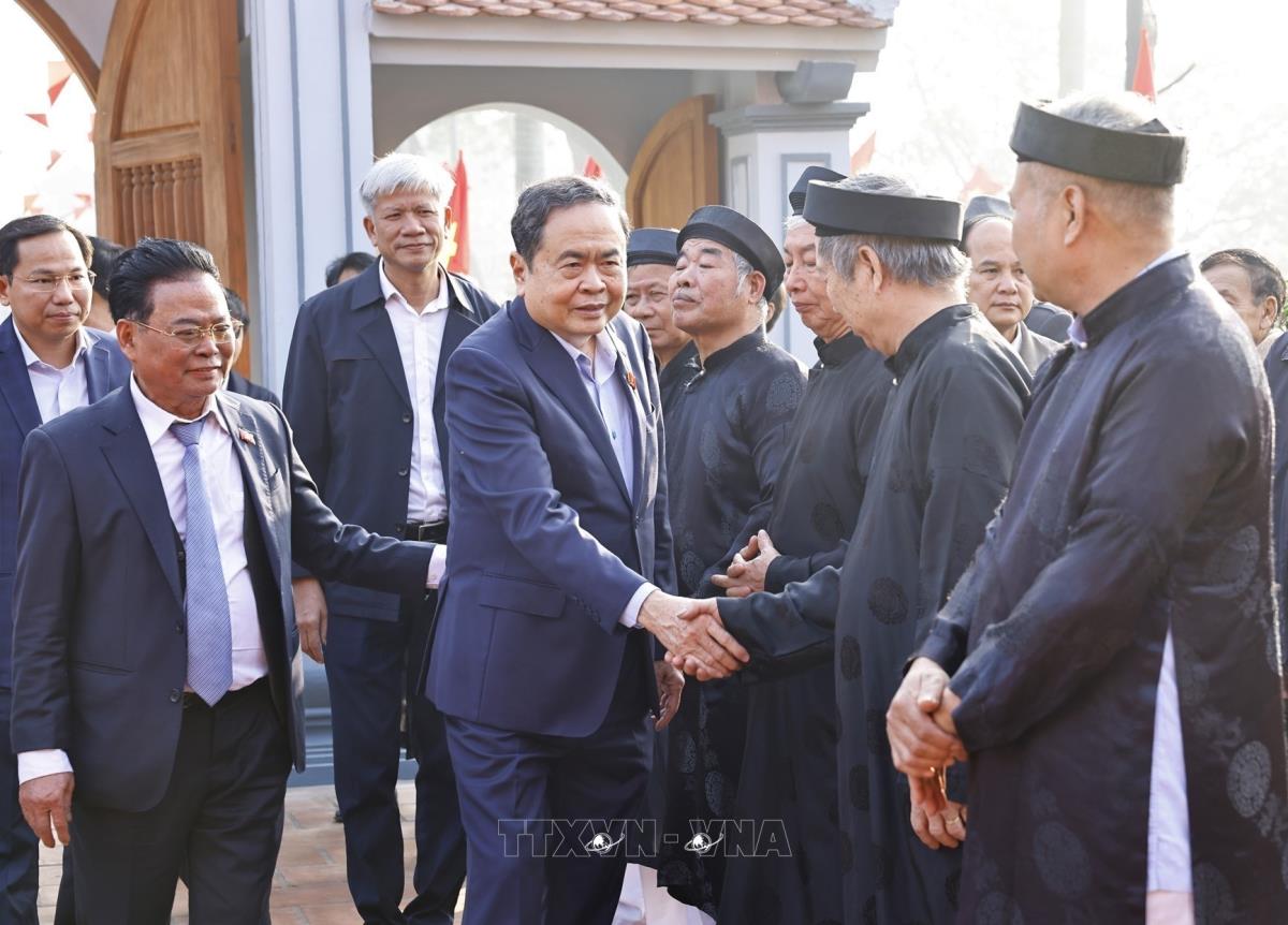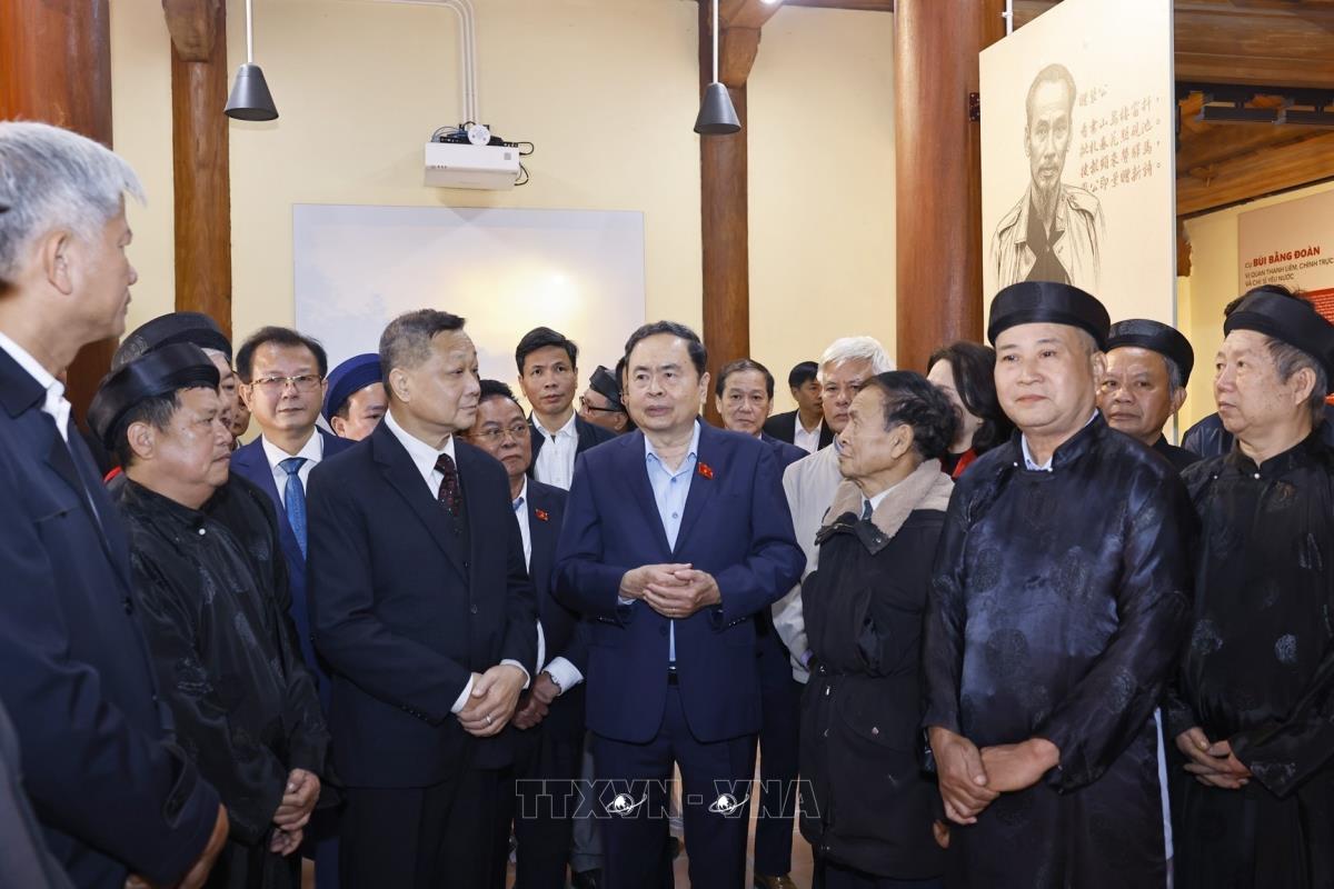 Chủ tịch Quốc hội Trần Thanh Mẫn với Ban quản lý và nhân dân tại Khu lưu niệm Trưởng Ban Thường trực Quốc hội Bùi Bằng Đoàn (27/1/2026). Ảnh: Doãn Tấn - TTXVN