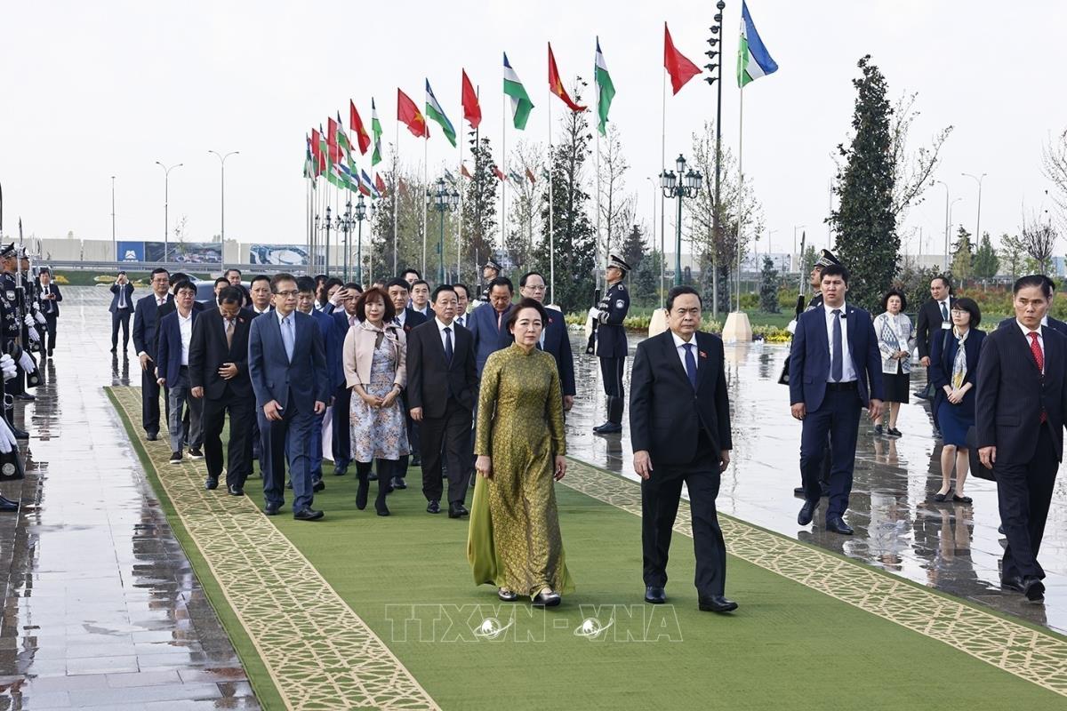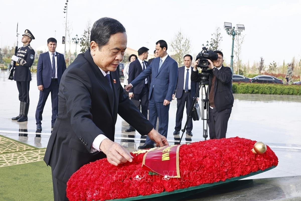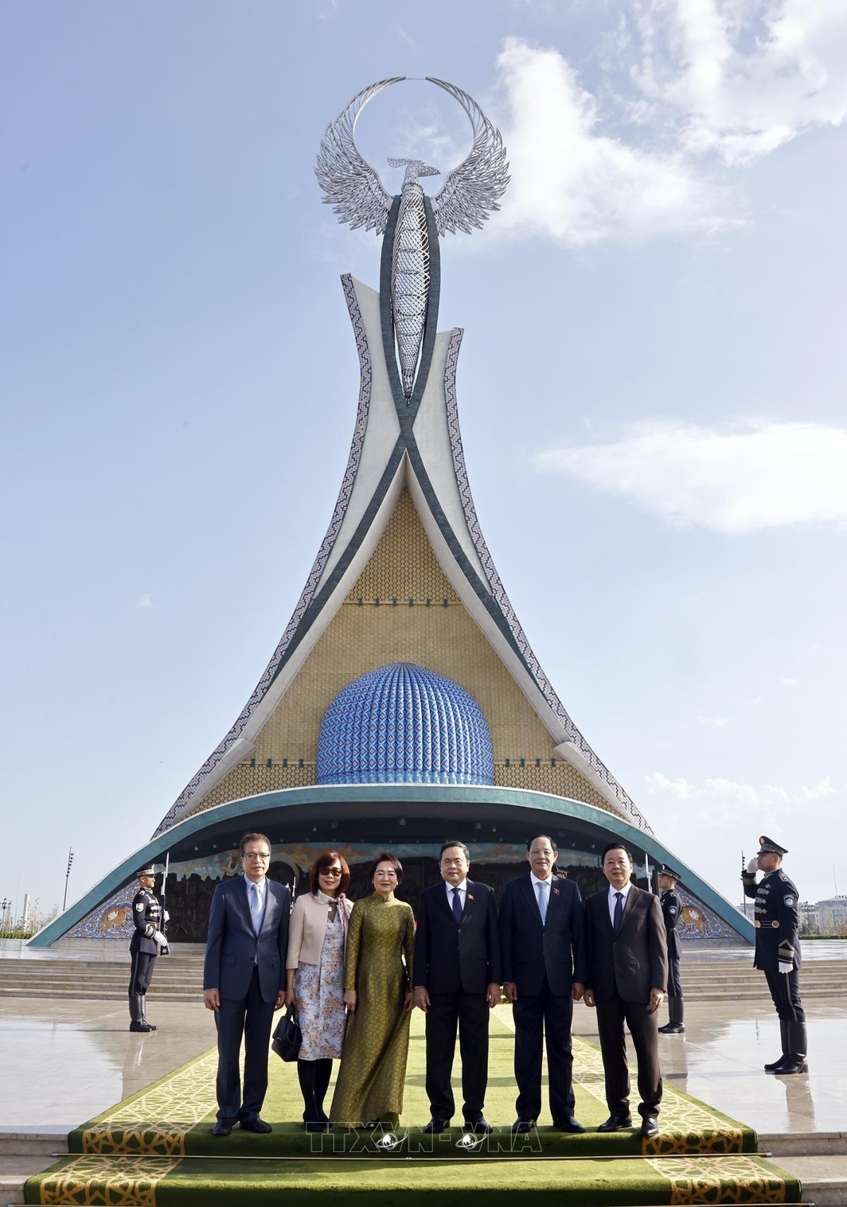 [Photo] Chủ tịch Quốc hội đặt hoa tại Tượng đài Độc lập của Uzbekistan