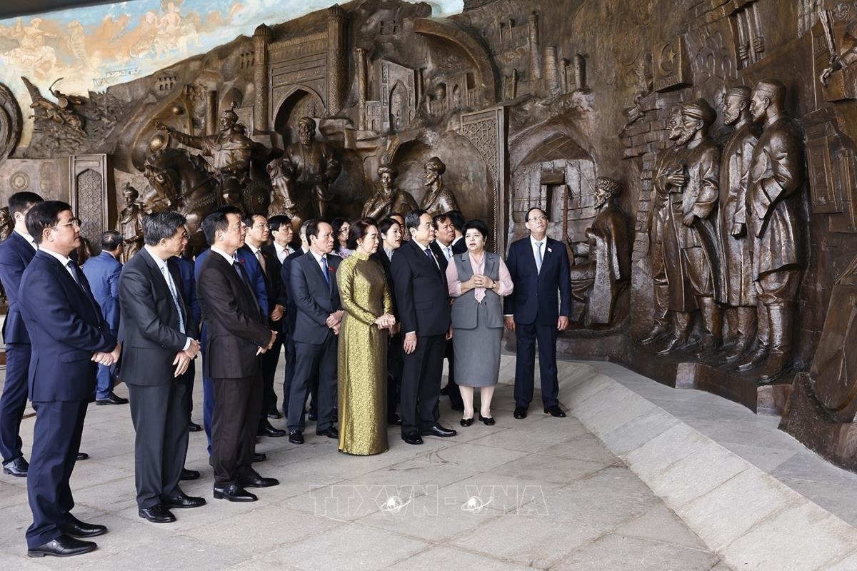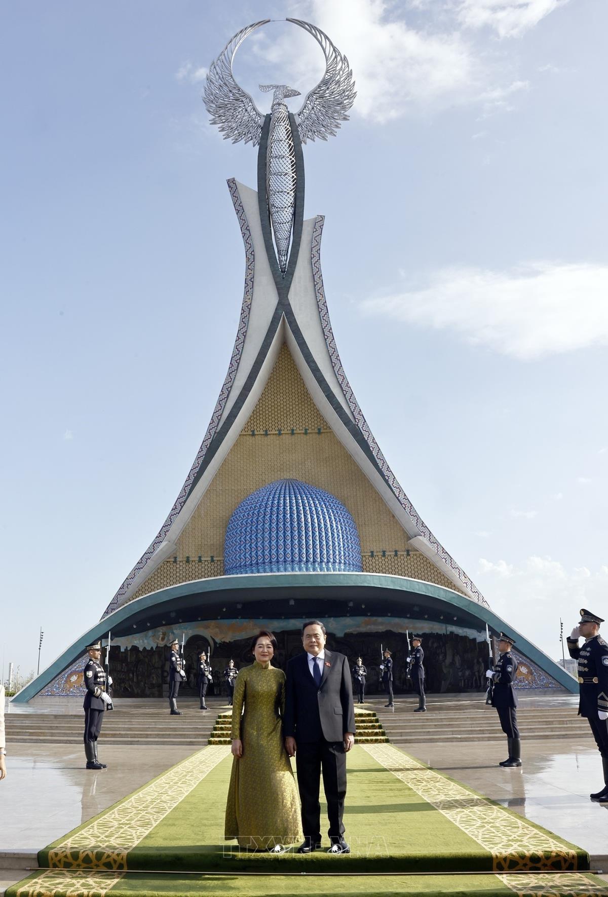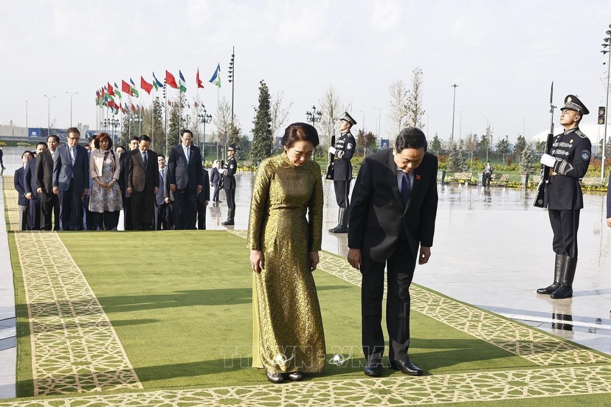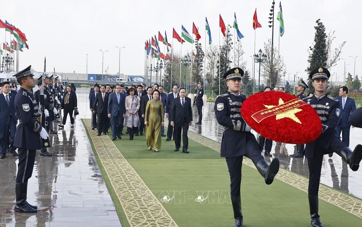[Photo] Chủ tịch Quốc hội đặt hoa tại Tượng đài Độc lập của Uzbekistan