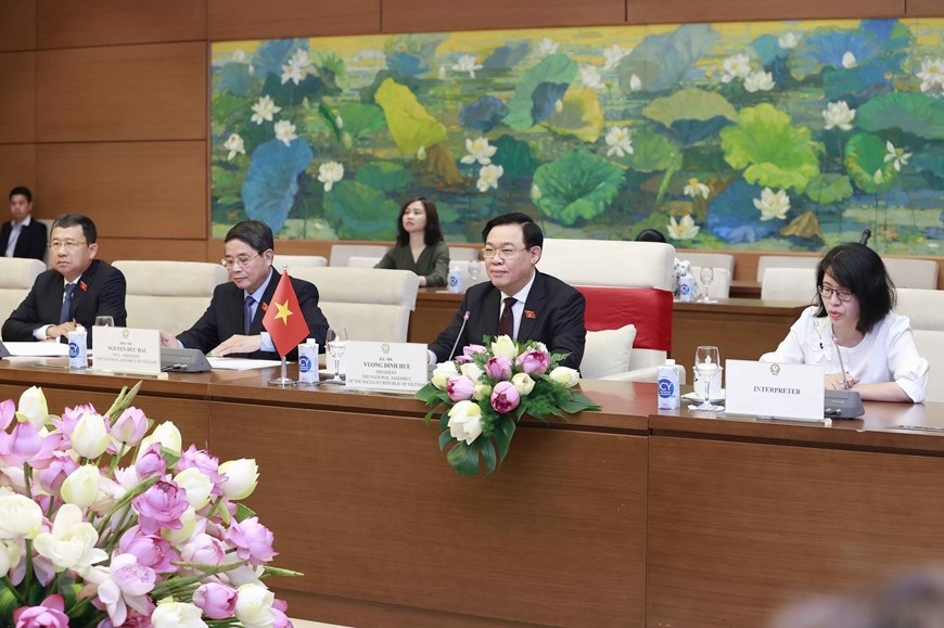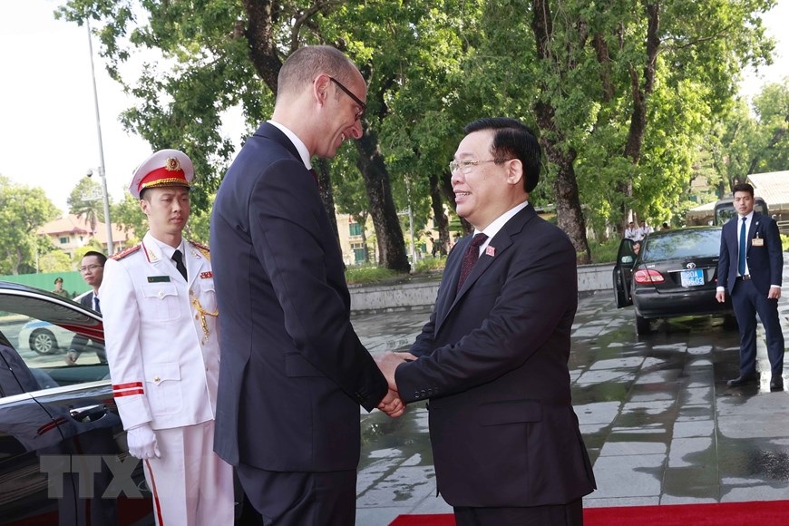 Hà Nội (TTXVN 28/6/2023) Sáng 28/6/2023, tại Nhà Quốc hội, Chủ tịch Quốc hội Vương Đình Huệ chủ trì lễ đón và hội đàm với Chủ tịch Hội đồng Quốc gia Liên bang Thụy Sĩ Martin Candinas thăm chính thức Việt Nam.