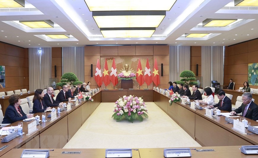[Photo] Chủ tịch Quốc hội đón, hội đàm với Chủ tịch Hội đồng Quốc gia Thụy Sĩ
