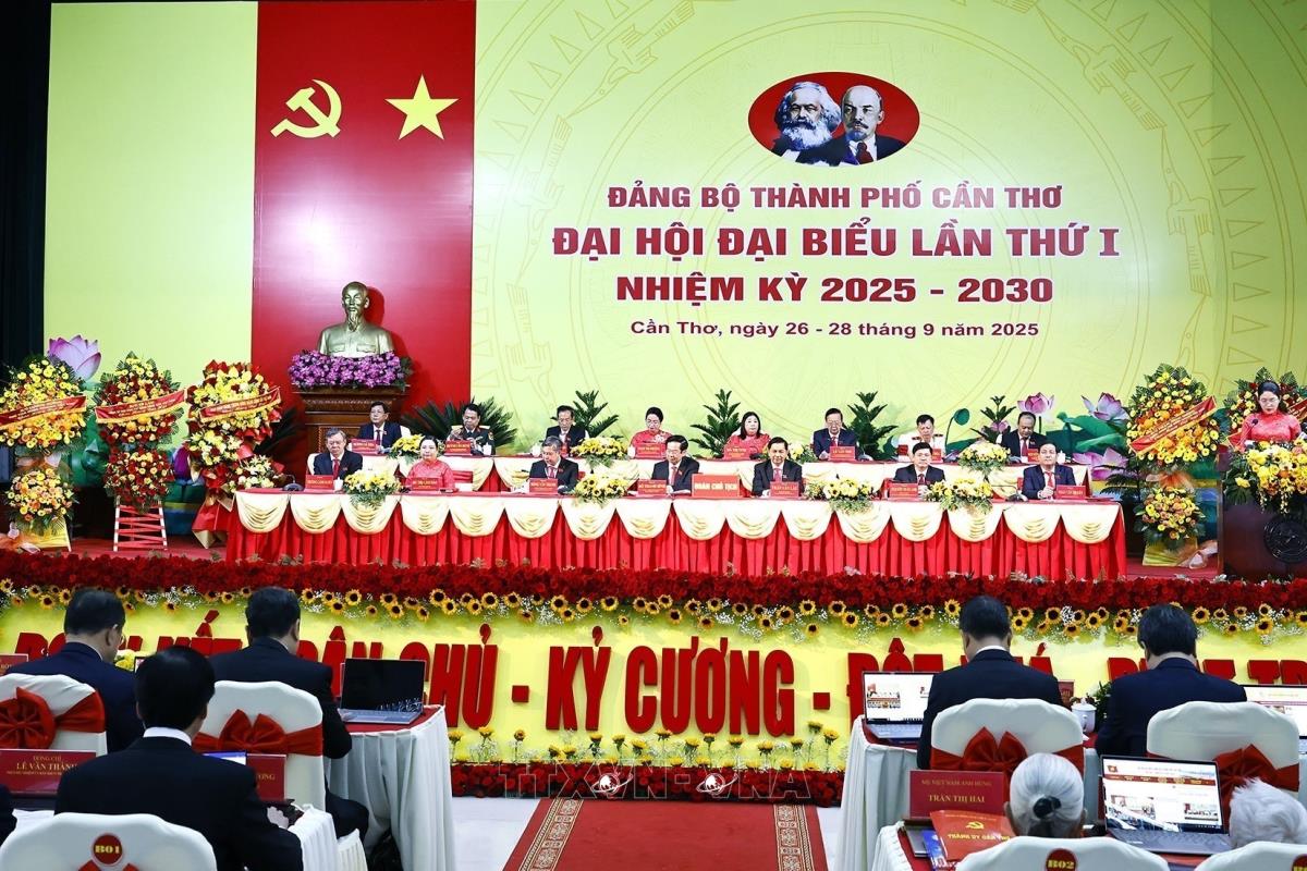 Chủ tịch Quốc hội Trần Thanh Mẫn dự Đại hội đại biểu Đảng bộ thành phố Cần Thơ lần thứ nhất, nhiệm kỳ 2025 – 2030 (27/9/2025). Ảnh: Doãn Tấn - TTXVN