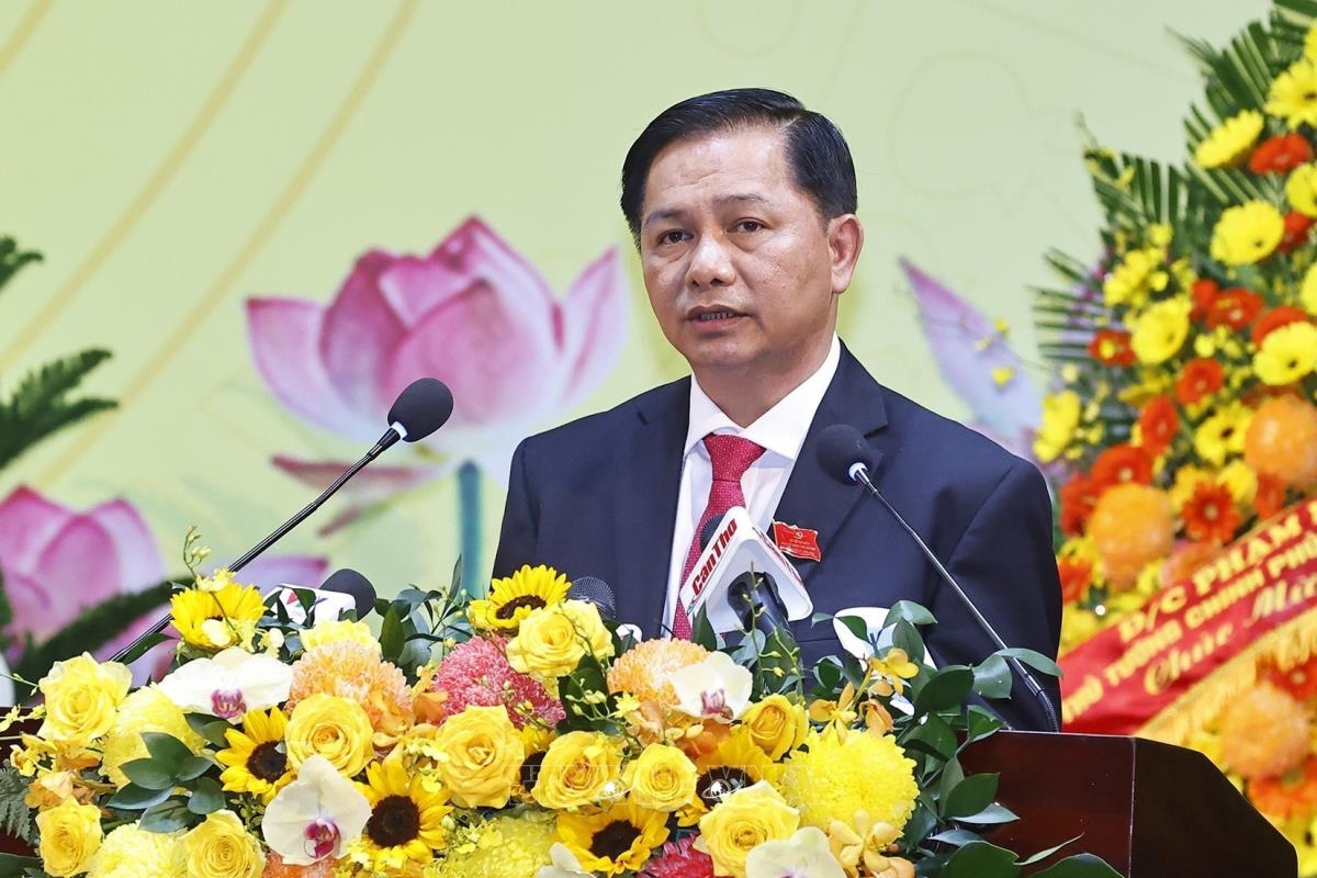 Ông Trần Văn Lâu, Phó Bí thư Thành ủy, Chủ tịch UBND TP Cần Thơ thay mặt Đoàn Chủ tịch trình bày dự thảo Báo cáo chính trị của Ban Chấp hành Đảng bộ thành phố, nhiệm kỳ 2020 - 2025 (27/9/2025). Ảnh: Doãn Tấn - TTXVN