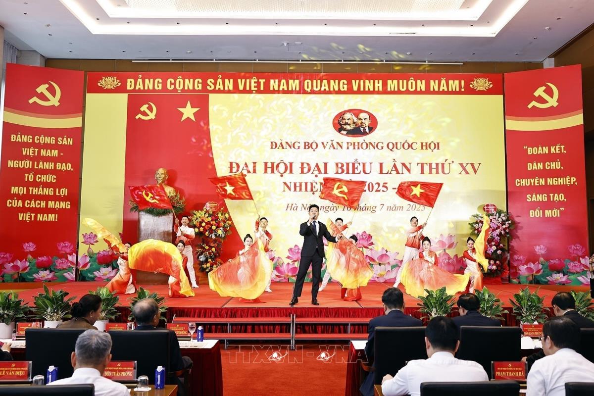 Hà Nội (TTXVN 16/7/2025) Chiều 16/7/2025, tại Hà Nội, Uỷ viên Bộ Chính trị, Bí thư Đảng ủy Quốc hội, Chủ tịch Quốc hội Trần Thanh Mẫn dự Đại hội đại biểu Đảng bộ Văn phòng Quốc hội lần thứ 15, nhiệm kỳ 2025-2030. Nguyên Chủ tịch Quốc hội Nguyễn Sinh Hùng và nguyên Chủ tịch Quốc hội Nguyễn Thị Kim Ngân cùng dự.
