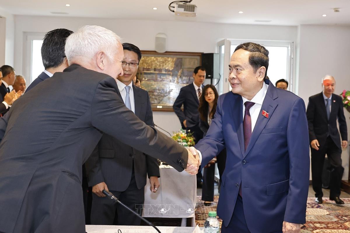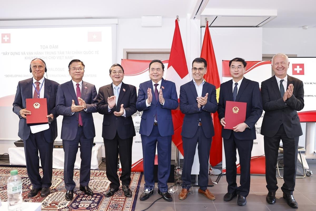Chủ tịch Quốc hội Trần Thanh Mẫn chứng kiến Lễ trao biên bản ghi nhớ hợp tác giữa Bộ Tài chính Việt Nam và Diễn đàn Kinh tế Thụy Sĩ - Việt Nam (SVEF) (28/7/2025). Ảnh: Doãn Tấn – TTXVN
