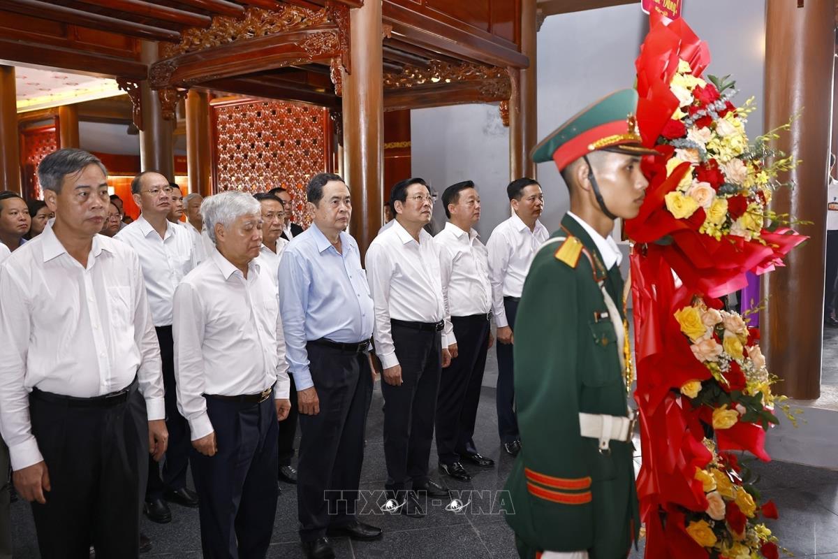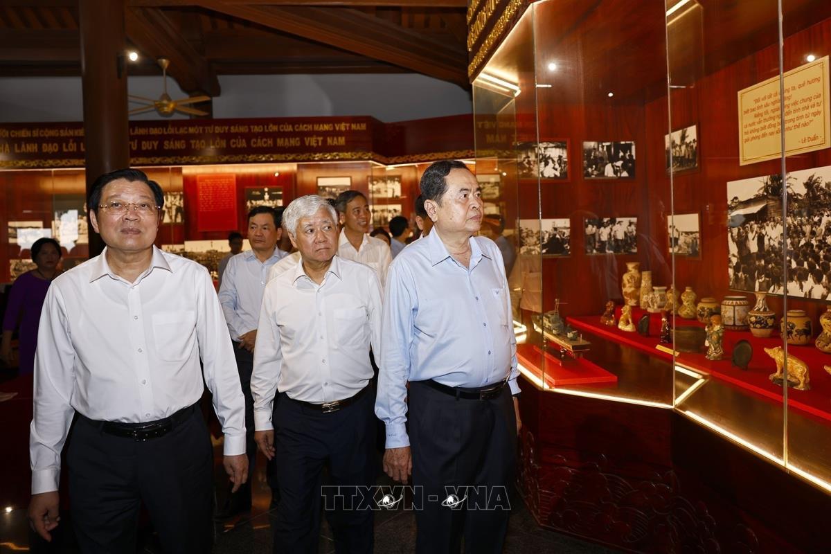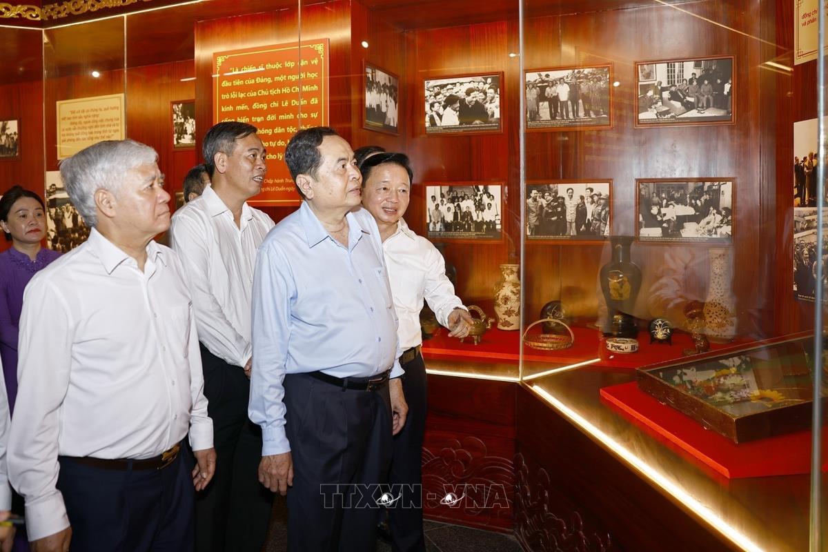 Chủ tịch Quốc hội Trần Thanh Mẫn và đại biểu tham quan Khu lưu niệm Tổng Bí thư Lê Duẩn tại Quảng Trị (28/4/2025). Ảnh: Doãn Tấn - TTXVN