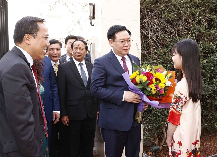 [Photo] Chủ tịch Quốc hội gặp gỡ cán bộ, nhân viên ĐSQ và cộng đồng người Việt