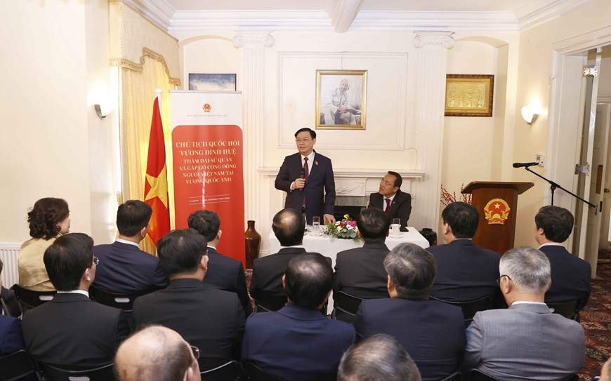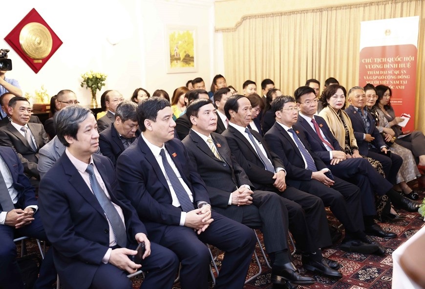 Chiều 28/6/2022, Chủ tịch Quốc hội Vương Đình Huệ và đoàn Đại biểu cấp cao Quốc hội nước Cộng hòa xã hội chủ nghĩa Việt Nam gặp gỡ cán bộ, nhân viên Đại sứ quán và cộng đồng người Việt tại Vương quốc Anh.