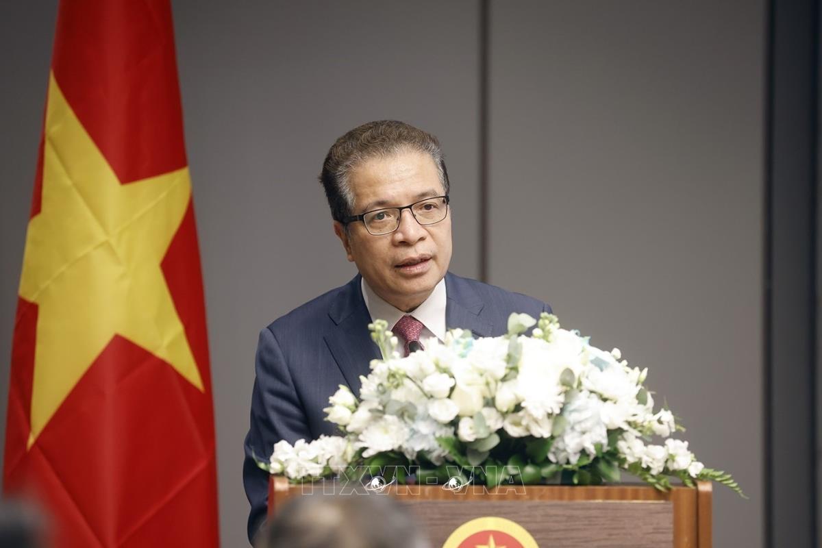 Đại sứ Đặc mệnh Toàn quyền Việt Nam tại LB Nga, kiêm nhiệm Uzbekistan và Armenia Đặng Minh Khôi phát biểu (8/4/2025). Ảnh: Doãn Tấn - TTXVN