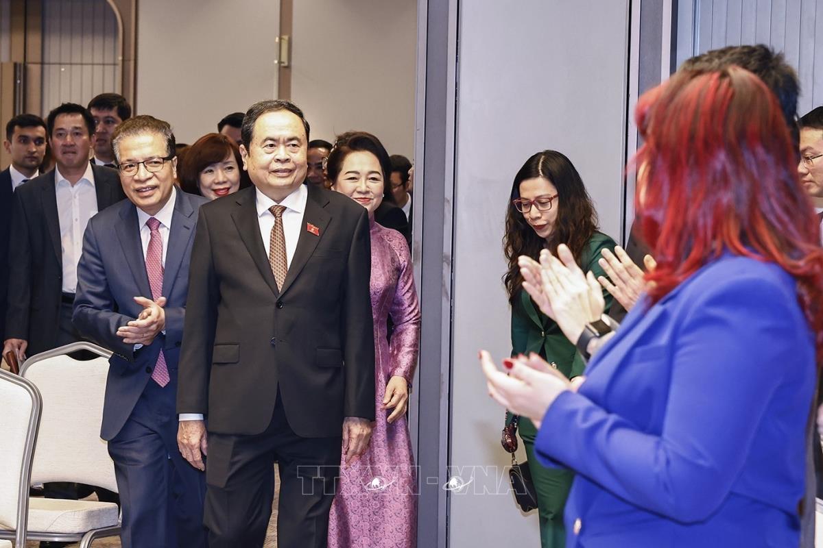 Phu nhân Chủ tịch Quốc hội Trần Thanh Mẫn và đại biểu dự gặp gỡ (8/4/2025). Ảnh: Doãn Tấn – TTXVN