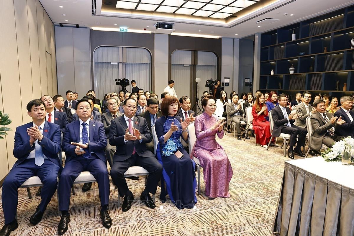 [Photo] Chủ tịch Quốc hội gặp gỡ đại diện cán bộ Đại sứ quán và đại diện cộng đồng người Việt Nam tại Uzbekistan