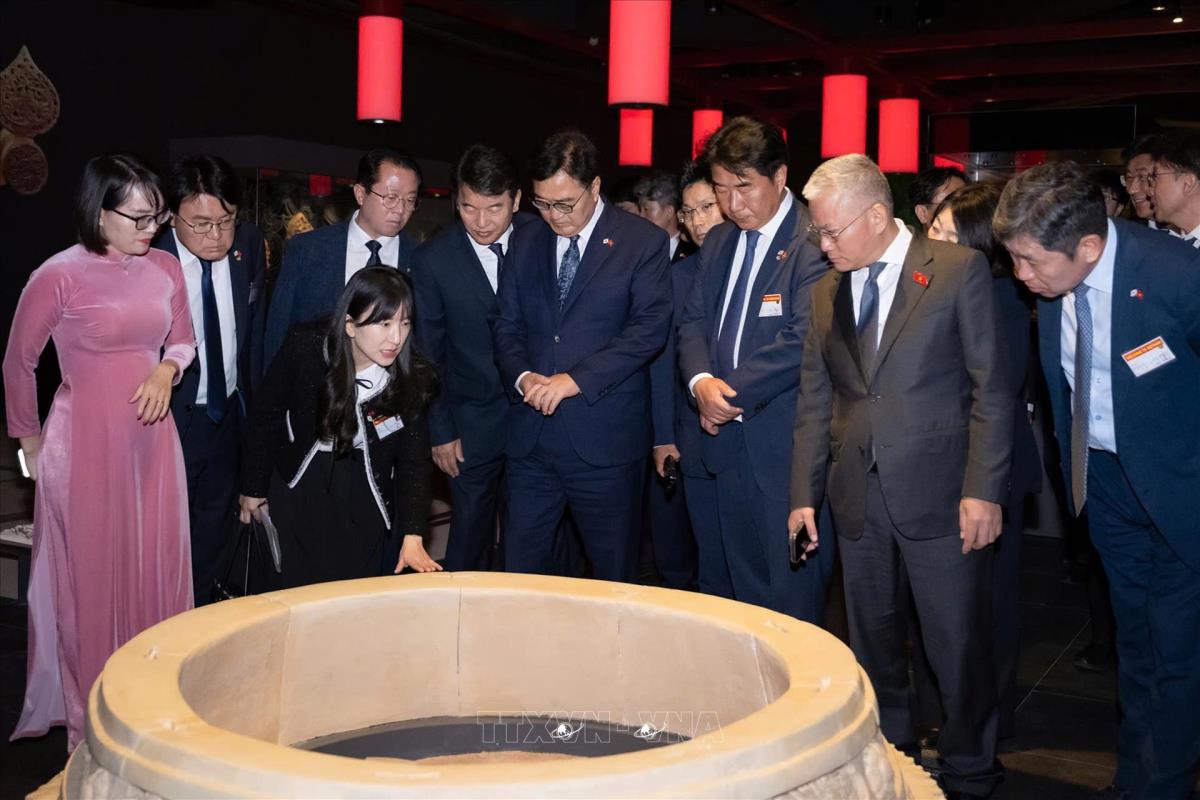 Chủ tịch Quốc hội Hàn Quốc Woo Won Shik tham quan Khu trưng bày khảo cổ dưới lòng tòa nhà Quốc hội (20/11/2025). Ảnh: Doãn Tấn - TTXVN