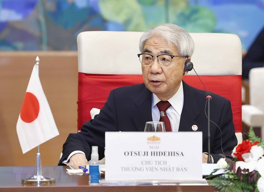 Chủ tịch Thượng viện Nhật Bản Otsuji Hidehisa phát biểu tại cuộc hội đàm. (Ảnh: Doãn Tấn/TTXVN)