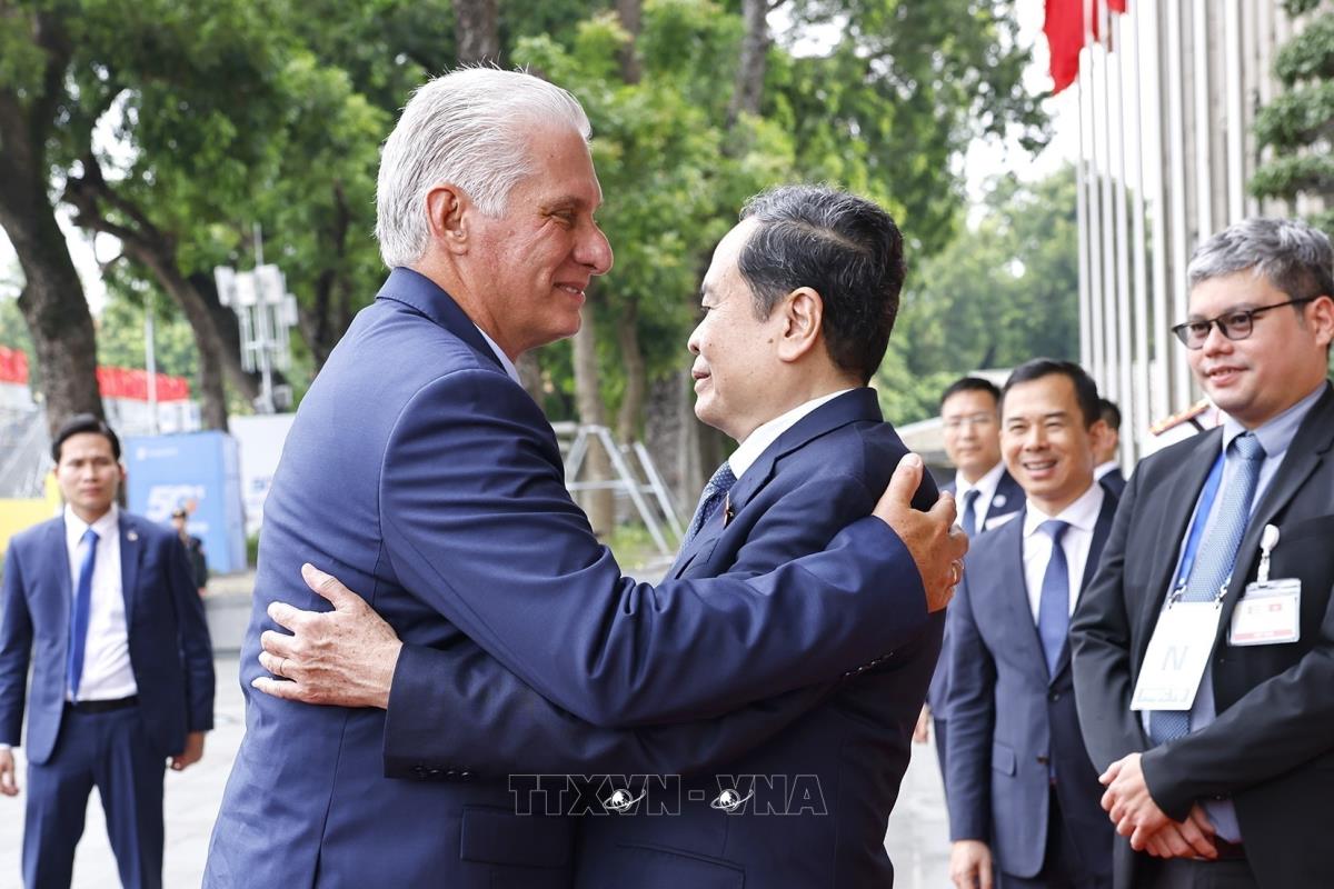 Chủ tịch Quốc hội Trần Thanh Mẫn đón Bí thư thứ nhất Ban Chấp hành Trung ương Đảng Cộng sản Cuba, Chủ tịch nước Cộng hòa Cuba Miguel Díaz-Canel Bermúdez (2/9/2025). Ảnh: Doãn Tấn - TTXVNChủ tịch Quốc hội Trần Thanh Mẫn đón Bí thư thứ nhất Ban Chấp hành Trung ương Đảng Cộng sản Cuba, Chủ tịch nước Cộng hòa Cuba Miguel Díaz-Canel Bermúdez (2/9/2025). Ảnh: Doãn Tấn - TTXVN