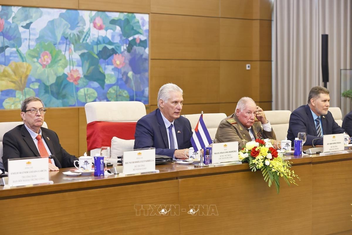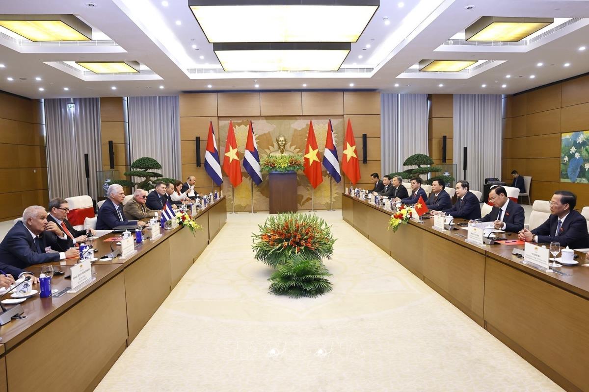 [Photo] Chủ tịch Quốc hội hội kiến Bí thư thứ nhất, Chủ tịch Cuba