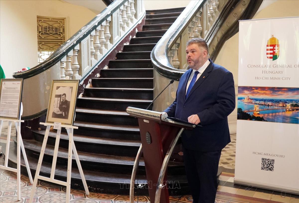 Ông Lehőcz Gábor, Tổng Lãnh sự Hungary tại TP. Hồ Chí Minh phát biểu tại triển lãm ảnh (19/10/2025). Ảnh: Trung Tuyến – TTXVN