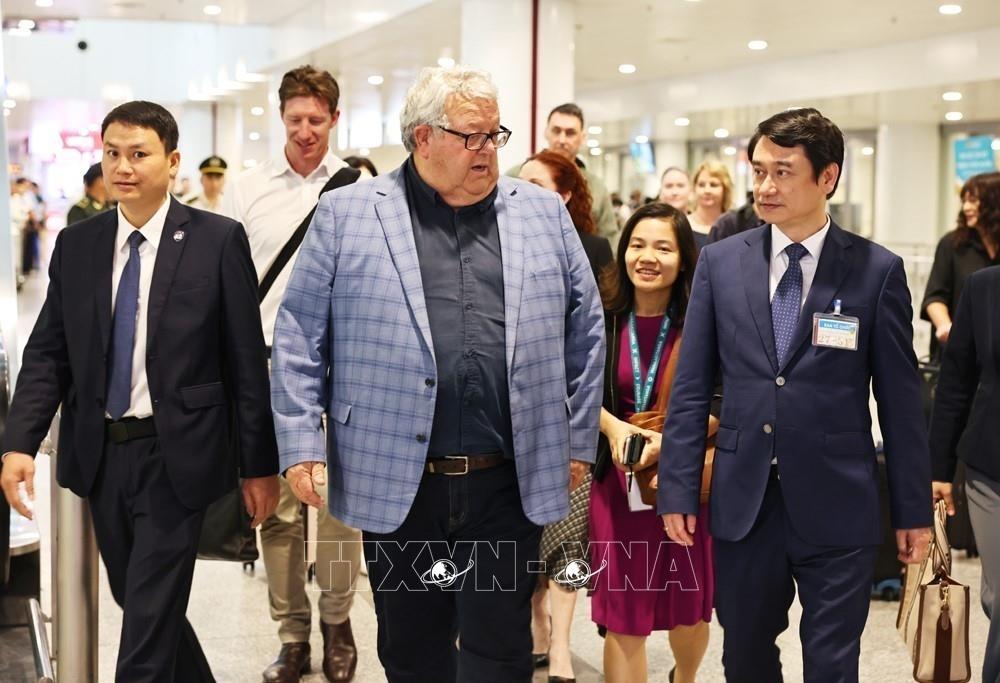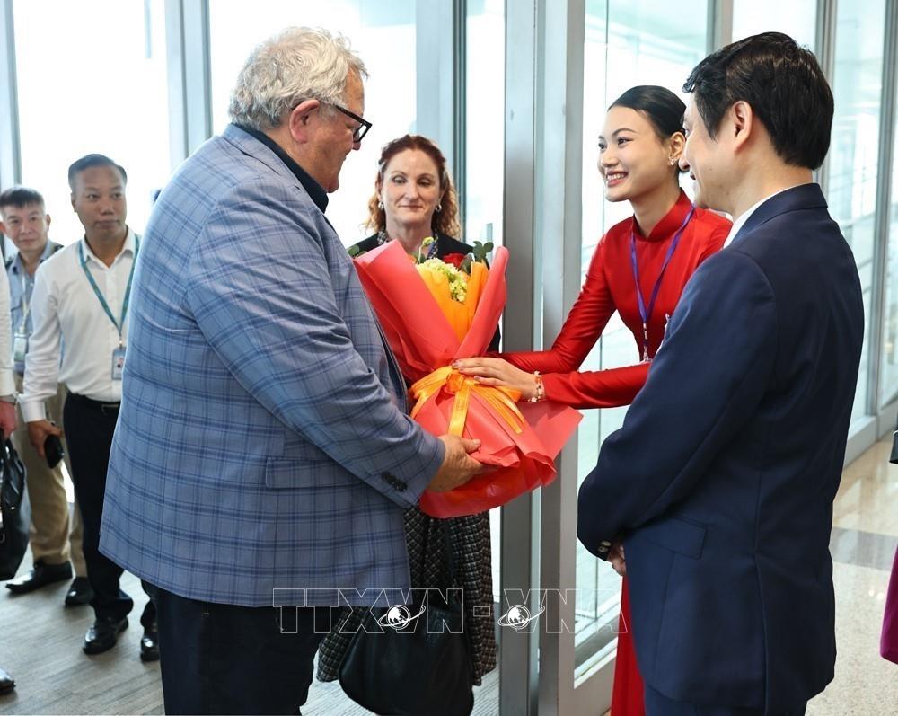 Thứ trưởng Bộ Ngoại giao Lê Anh Tuấn đón Chủ tịch Quốc hội New Zealand Gerry Brownlee tại sân bay Quốc tế Nội Bài (27/8/2025). Ảnh: Minh Đức - TTXVN
