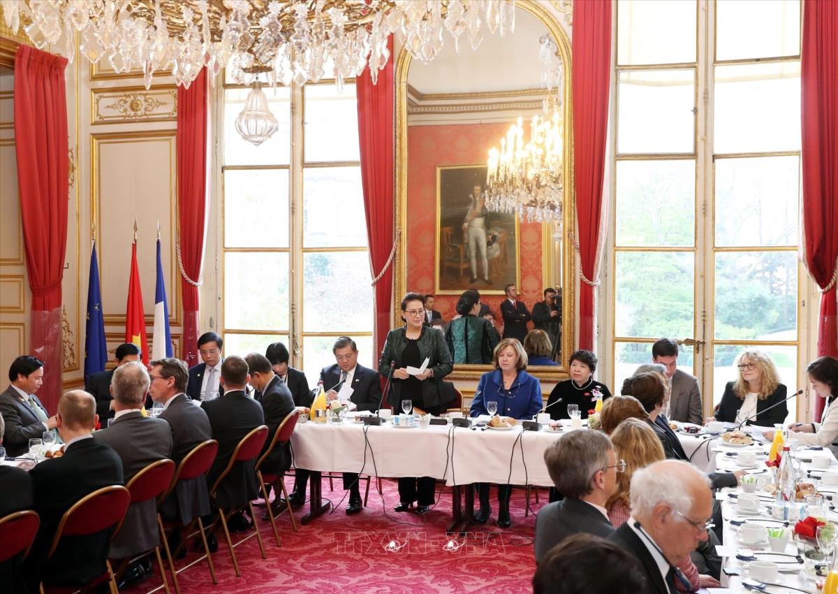 Hà Nội (TTXVN 1/4/2019) Tiếp tục chương trình thăm chính thức Cộng hòa Pháp, sáng 1/4/2019 (theo giờ địa phương), tại Thủ đô Paris, Chủ tịch Quốc hội Nguyễn Thị Kim Ngân gặp gỡ Nhóm nghị sĩ hữu nghị Pháp – Việt.