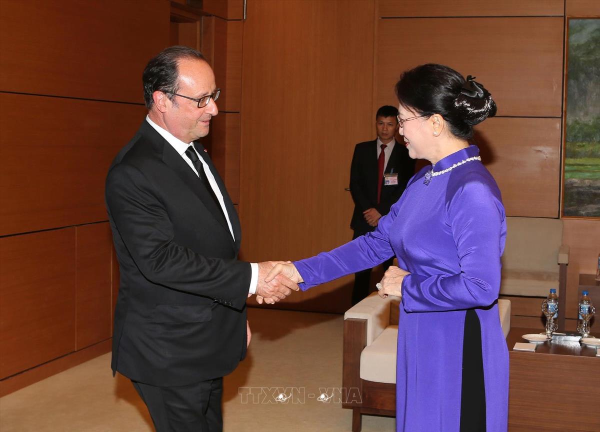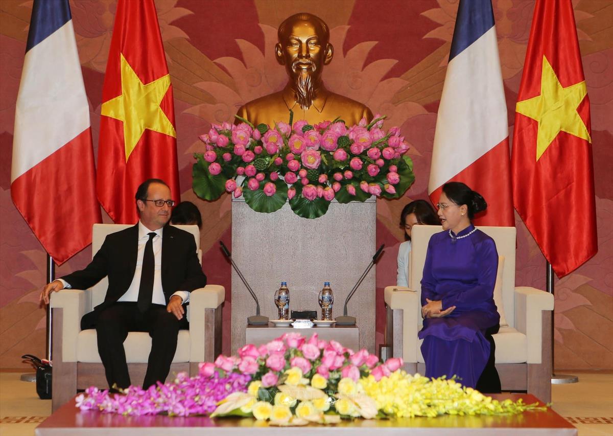 Chủ tịch Quốc hội Nguyễn Thị Kim Ngân hội kiến Tổng thống Cộng hòa Pháp Francois Hollande (Hà Nội, 6/9/2016). Ảnh: Trọng Đức - TTXVN