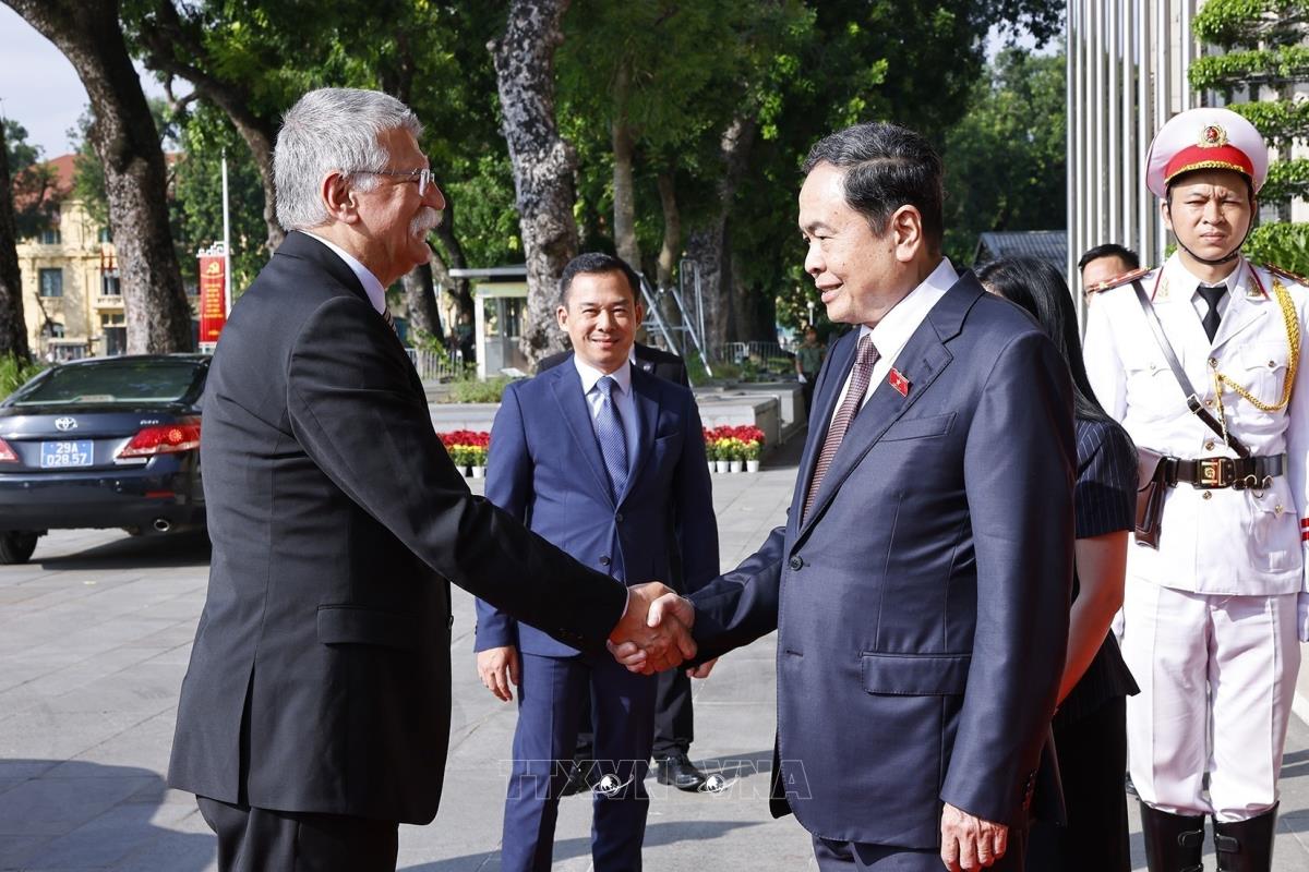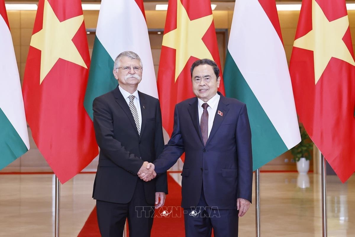Chủ tịch Quốc hội Trần Thanh Mẫn đón Chủ tịch Quốc hội Hungary Kover Laszlo thăm chính thức Việt Nam (20/10/2025). Ảnh: Doãn Tấn - TTXVN