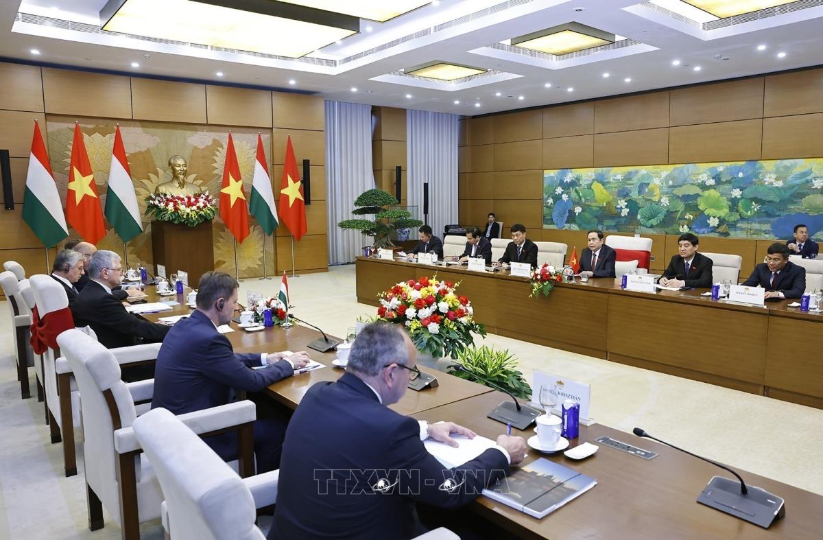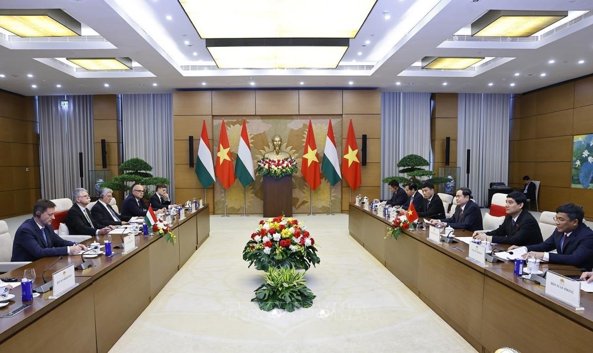 Chủ tịch Quốc hội Trần Thanh Mẫn hội đàm với Chủ tịch Quốc hội Hungary Kover Laszlo (20/10/2025). Ảnh: Doãn Tấn - TTXVN
