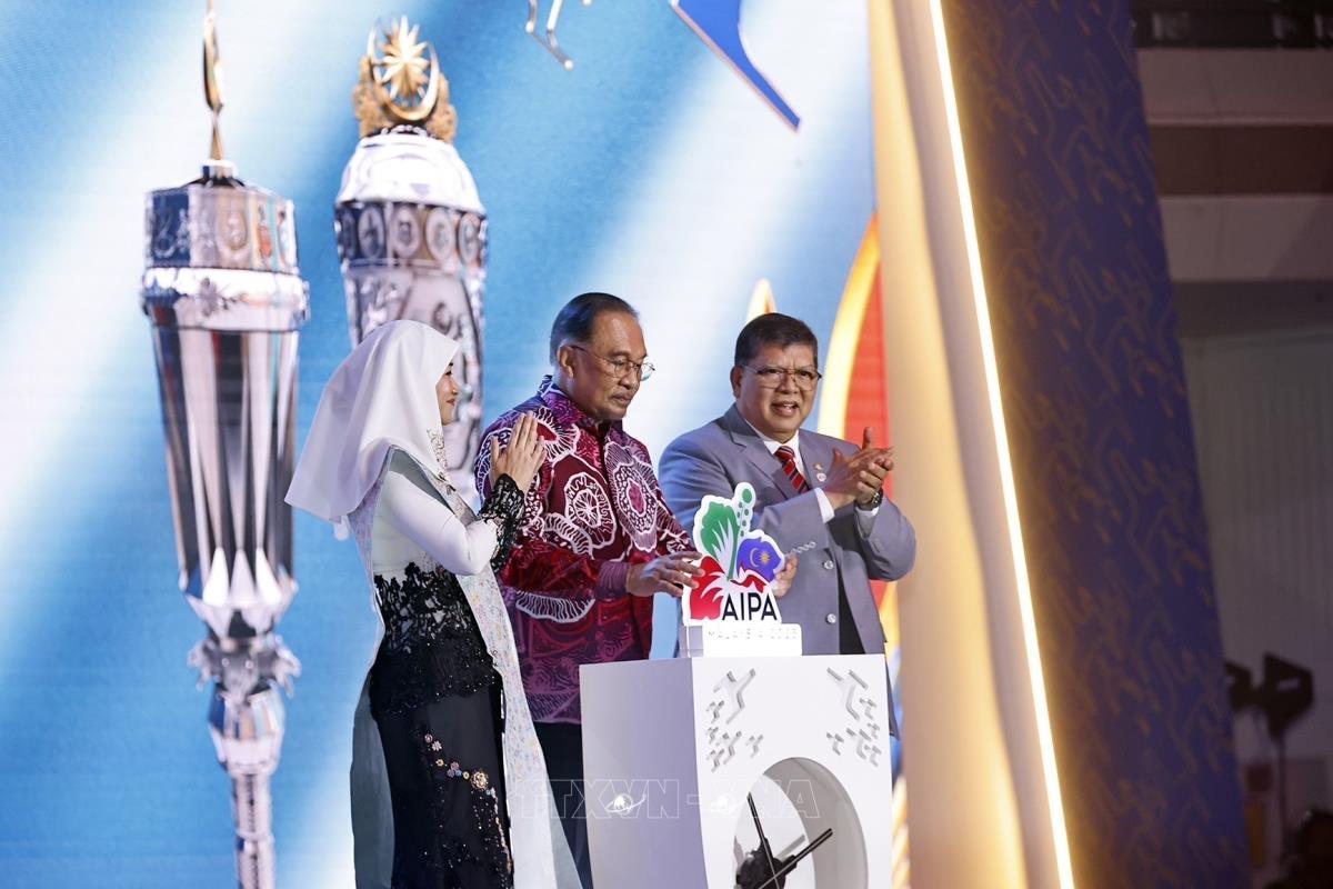 Thủ tướng Malaysia Anwar Ibrahim và Chủ tịch Hạ viện Malaysia - Chủ tịch AIPA-46 Johari Abdul thực hiện nghi thức khai mạc Đại hội đồng AIPA-46 (18/9/2025). Ảnh: Doãn Tấn – TTXVN