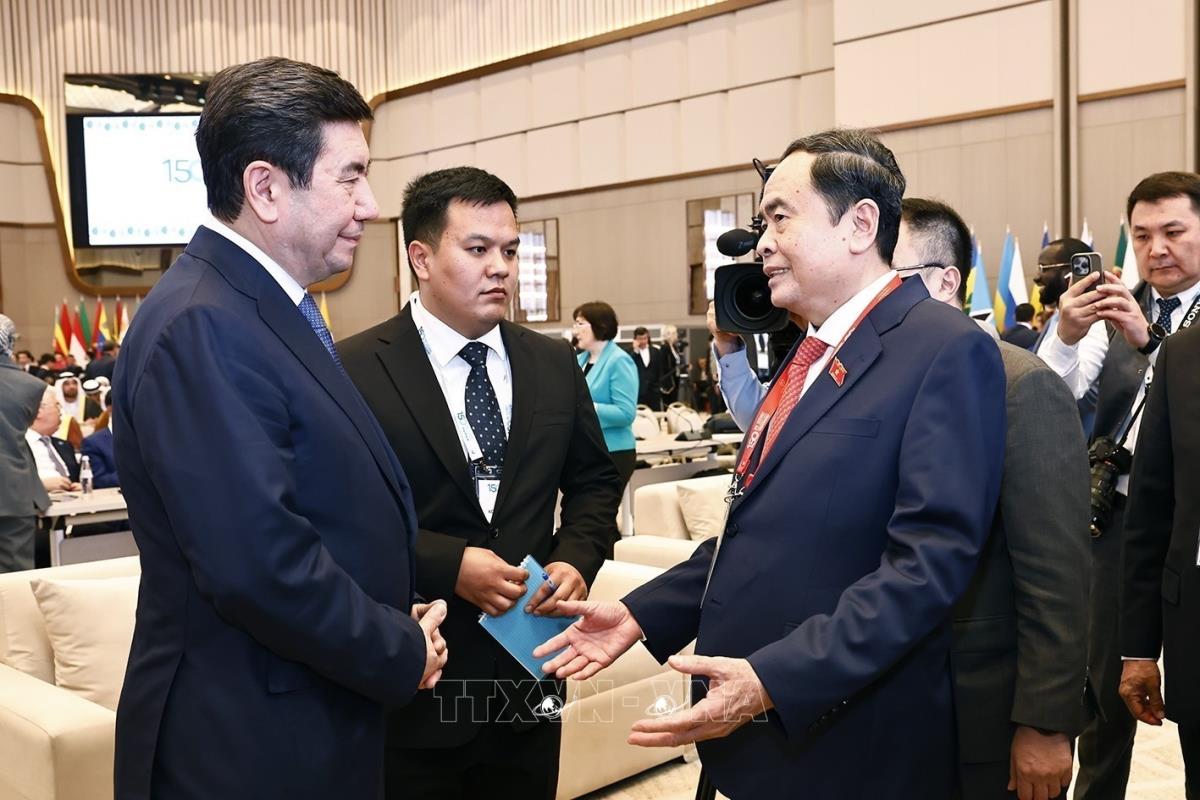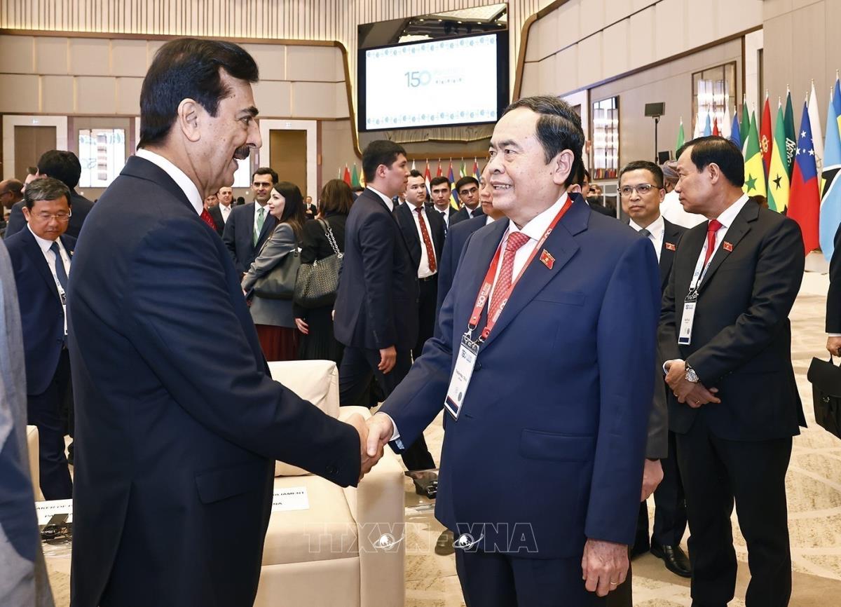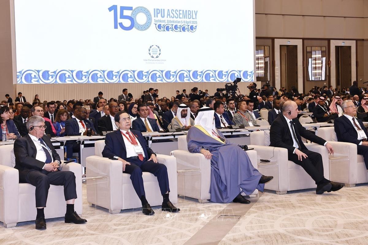Hà Nội (TTXVN 5/4/2025) Tối 5/4/2025 (giờ địa phương), tại Thủ đô Tashkent (Uzbekistan), Chủ tịch Quốc hội Trần Thanh Mẫn tham dự Lễ khai mạc Đại hội đồng lần thứ 150 của Liên minh Nghị viện thế giới (IPU-150).