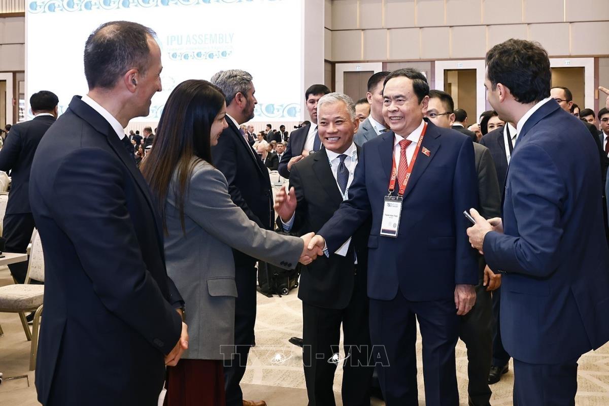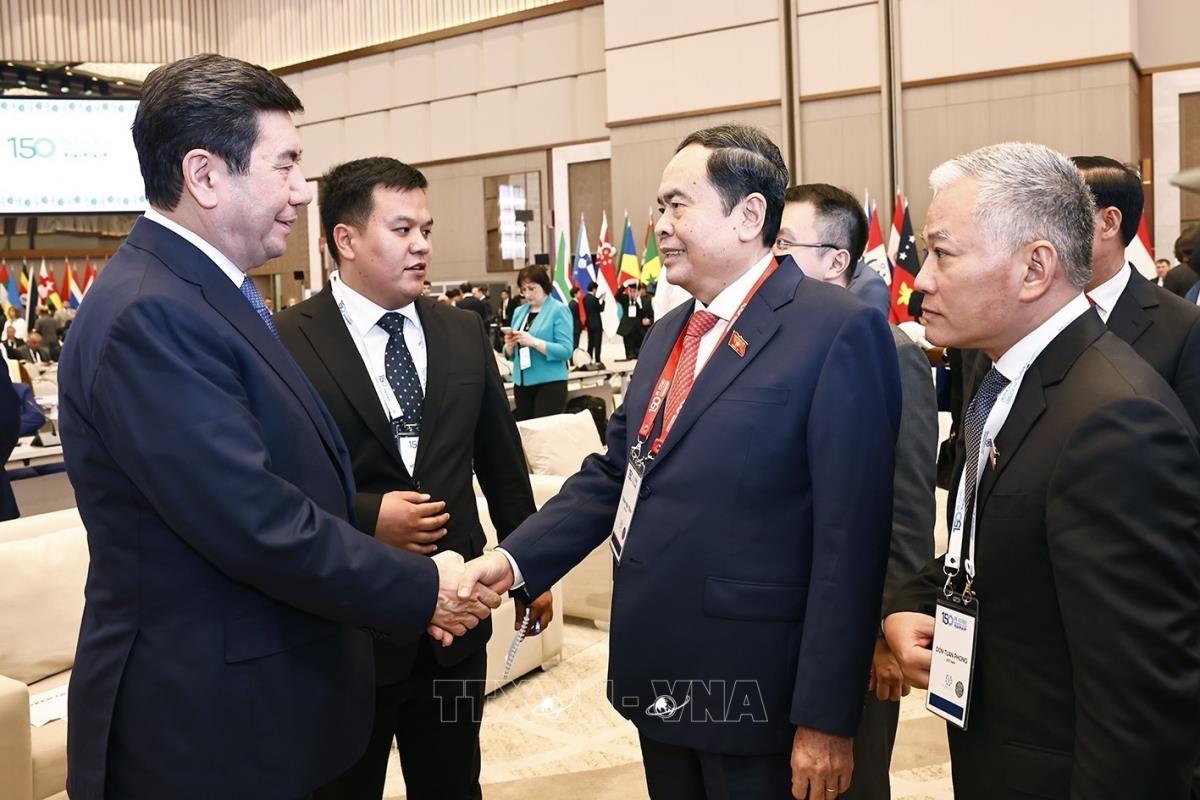 Chủ tịch Quốc hội Trần Thanh Mẫn với đại biểu tham dự Lễ khai mạc IPU-150 (5/4/2025). Ảnh: Doãn Tấn – TTXVN