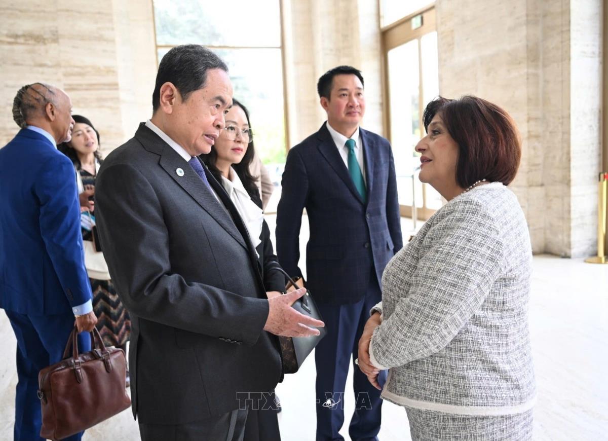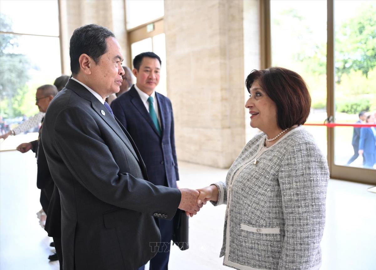 Sáng 30/7/2025, giờ địa phương (chiều cùng ngày, giờ Hà Nội), trong khuôn khổ chuyến tham dự Hội nghị các Chủ tịch Quốc hội thế giới lần thứ 6 tại Geneva (Thụy Sĩ), Chủ tịch Quốc hội Trần Thanh Mẫn gặp Chủ tịch Quốc hội Azerbaijan Sahiba Gafarova.