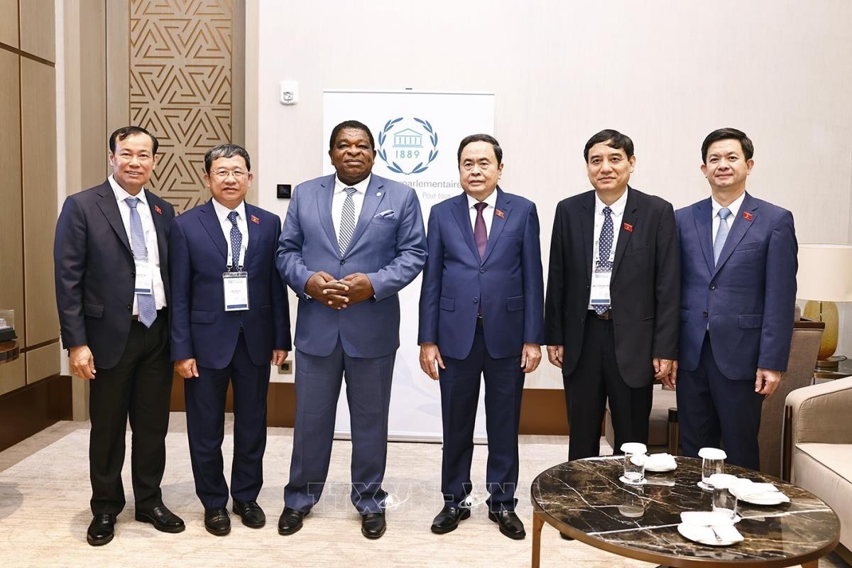 Chủ tịch Quốc hội Trần Thanh Mẫn, Tổng Thư ký IPU Martin Chungong chụp ảnh lưu niệm với đại biểu (6/4/2025). Ảnh: Doãn Tấn - TTXVN