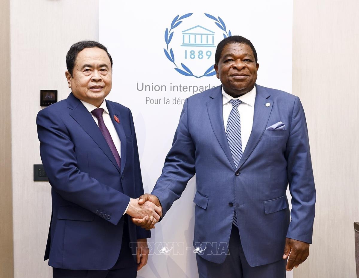 Chủ tịch Quốc hội Trần Thanh Mẫn gặp Tổng Thư ký IPU Martin Chungong (6/4/2025). Ảnh: Doãn Tấn - TTXVN
