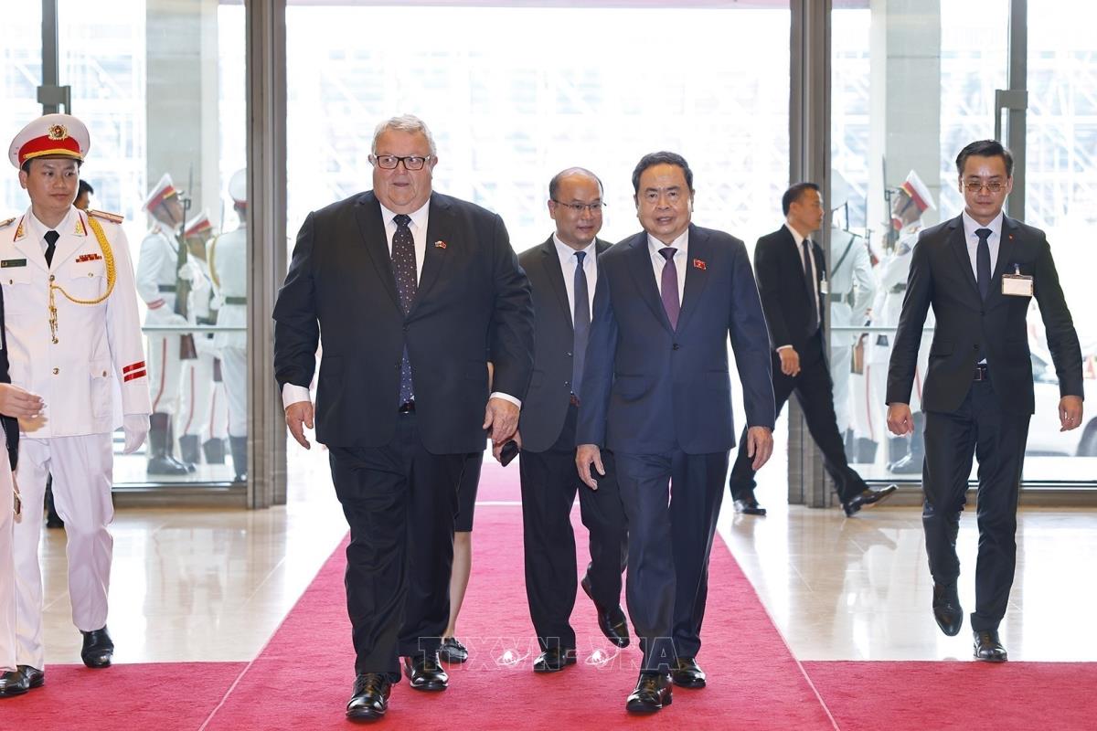 Chủ tịch Quốc hội Trần Thanh Mẫn đón Chủ tịch Quốc hội New Zealand Gerry Brownlee thăm chính thức Việt Nam (28/8/2025). Ảnh: Doãn Tấn – TTXVN