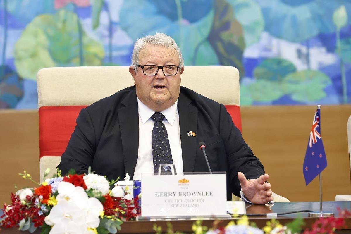 Chủ tịch Quốc hội New Zealand Gerry Brownlee phát biểu (28/8/2025). Ảnh: Doãn Tấn – TTXVN