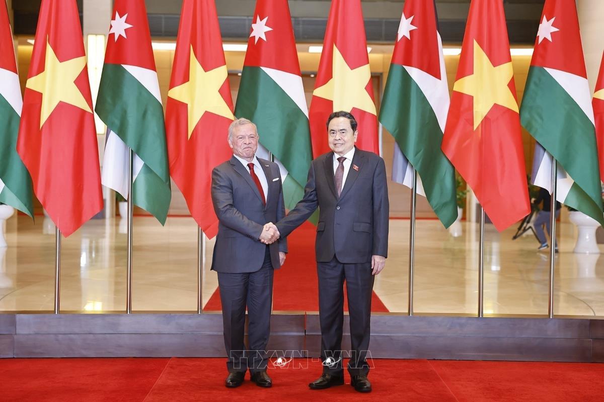 Chủ tịch Quốc hội Trần Thanh Mẫn đón Quốc vương Jordan Abdullah II bin Al Hussein (12/11/2025). Ảnh: Doãn Tấn – TTXVN