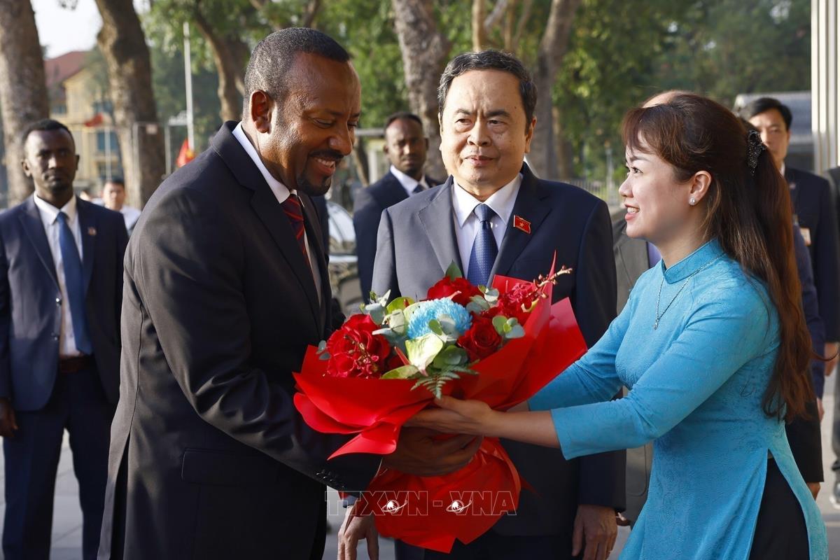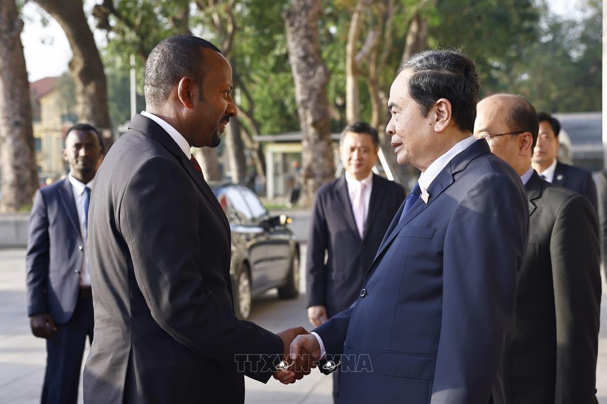 Chủ tịch Quốc hội Trần Thanh Mẫn đón Thủ tướng Cộng hòa Dân chủ Liên bang Ethiopia Abiy Ahmed Ali (16/4/2025). Ảnh: Doãn Tấn - TTXVN