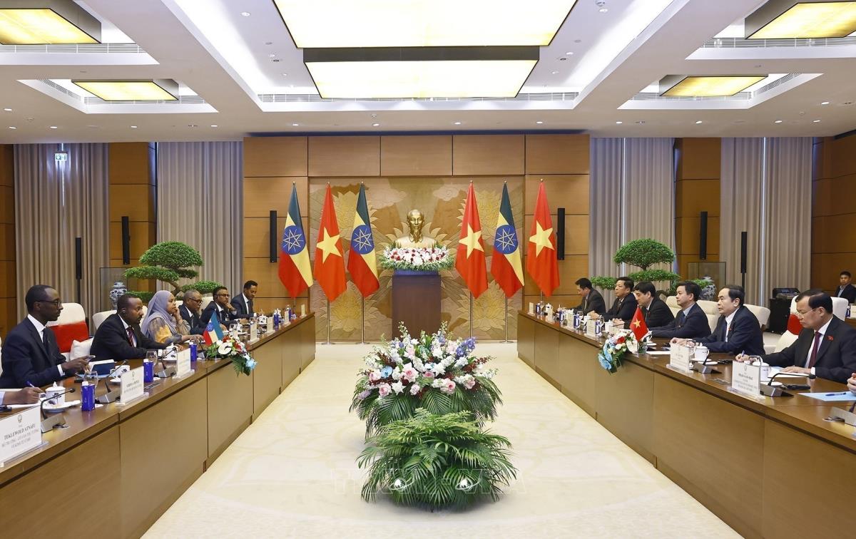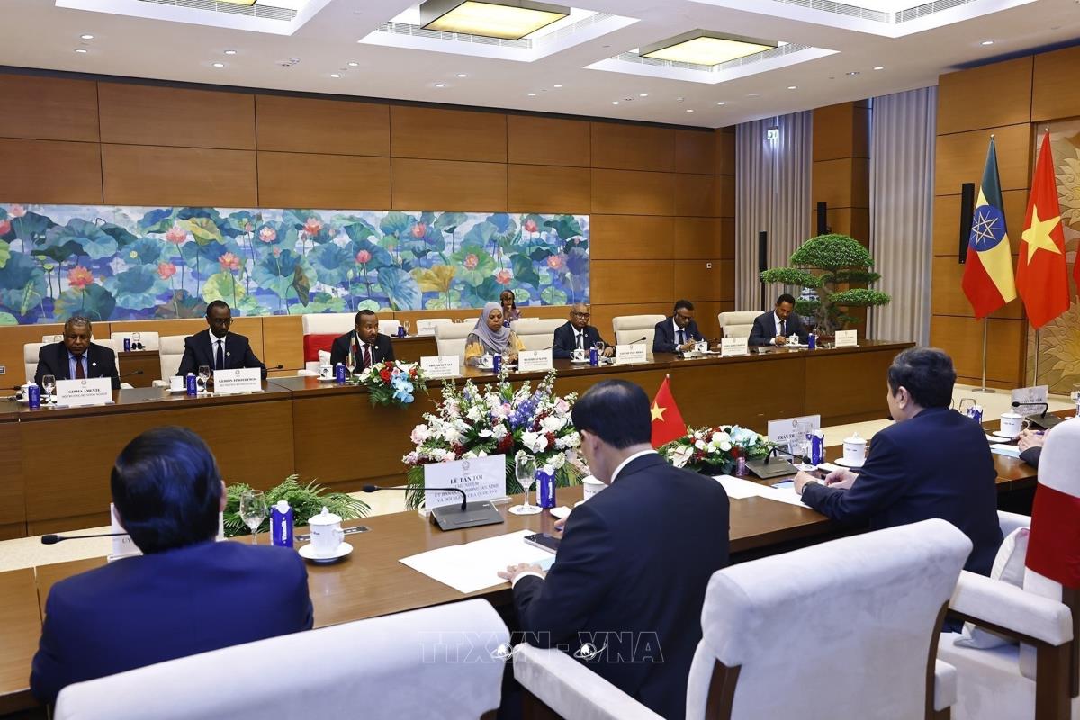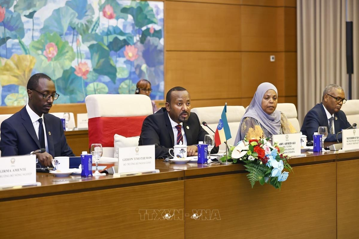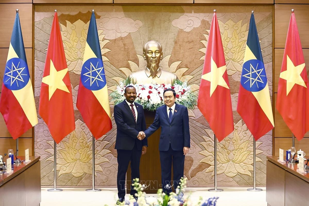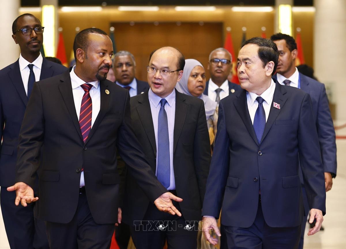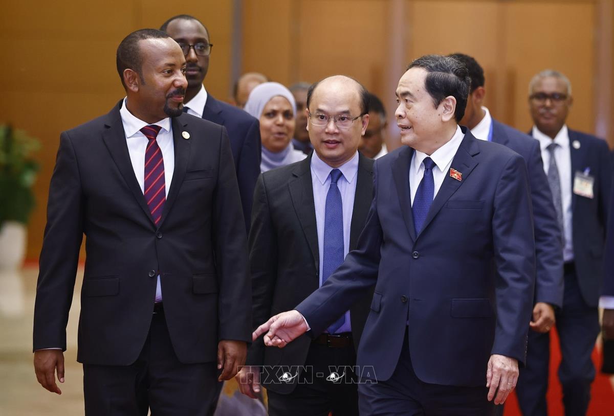 Chủ tịch Quốc hội Trần Thanh Mẫn hội kiến Thủ tướng Cộng hòa Dân chủ Liên bang Ethiopia Abiy Ahmed Ali (16/4/2025). Ảnh: Doãn Tấn - TTXVN