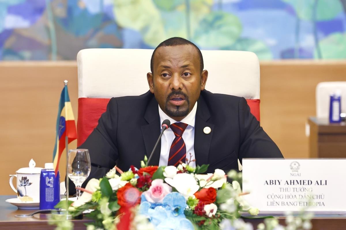 Thủ tướng Cộng hòa Dân chủ Liên bang Ethiopia Abiy Ahmed Ali phát biểu (16/4/2025). Ảnh: Doãn Tấn - TTXVN