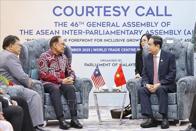 Trong chương trình tham dự Đại hội đồng liên Nghị viện các nước ASEAN lần thứ 46 (AIPA-46), trưa 18/9/2025, tại thủ đô Kuala Lumpur, Chủ tịch Quốc hội Trần Thanh Mẫn hội kiến Thủ tướng Malaysia Anwar Ibrahim.