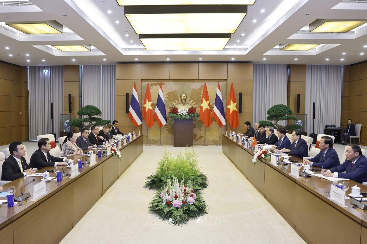 Thủ tướng Thái Lan Paetongtarn Shinawatra nhấn mạnh hai nước có nhiều điểm tương đồng, lại đều có vị trí, vai trò quan trọng trong chính sách đối ngoại của nhau; cho rằng việc tăng cường hợp tác chặt chẽ giữa hai nước là rất có ý nghĩa trong bối cảnh tình hình khu vực, thế giới có nhiều thách thức như hiện nay. Thủ tướng Thái Lan đề nghị hai bên thúc đẩy trao đổi đoàn, thăm viếng lẫn nhau, mở rộng hợp tác giữa các Nhóm nghị sĩ hữu nghị hai nước, nhất là chia sẻ kinh nghiệm trong lĩnh vực lập pháp và phối hợp tại các khuôn khổ diễn đàn nghị viện đa phương.