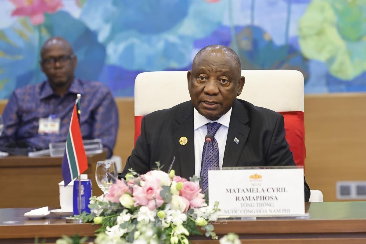 Tổng thống Cộng hòa Nam Phi Matamela Cyril Ramaphosa phát biểu (24/10/2025). Ảnh: Doãn Tấn – TTXVN