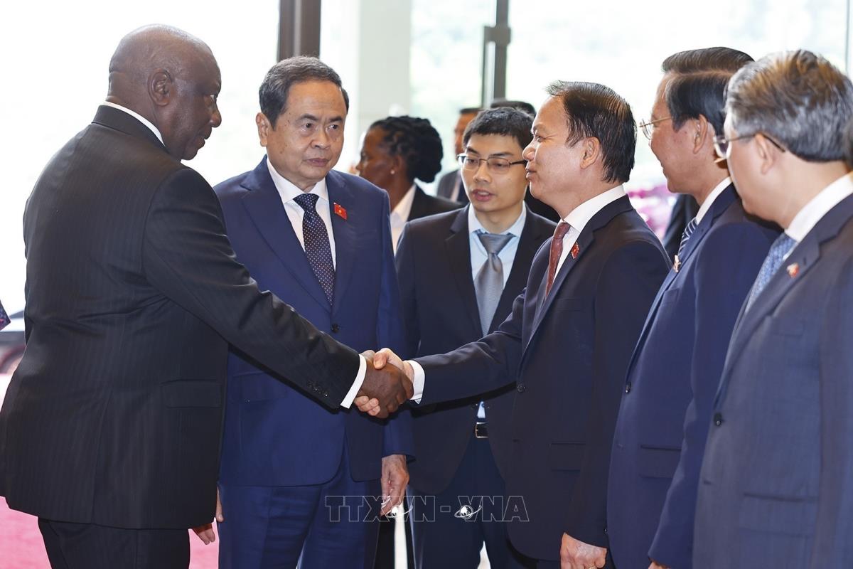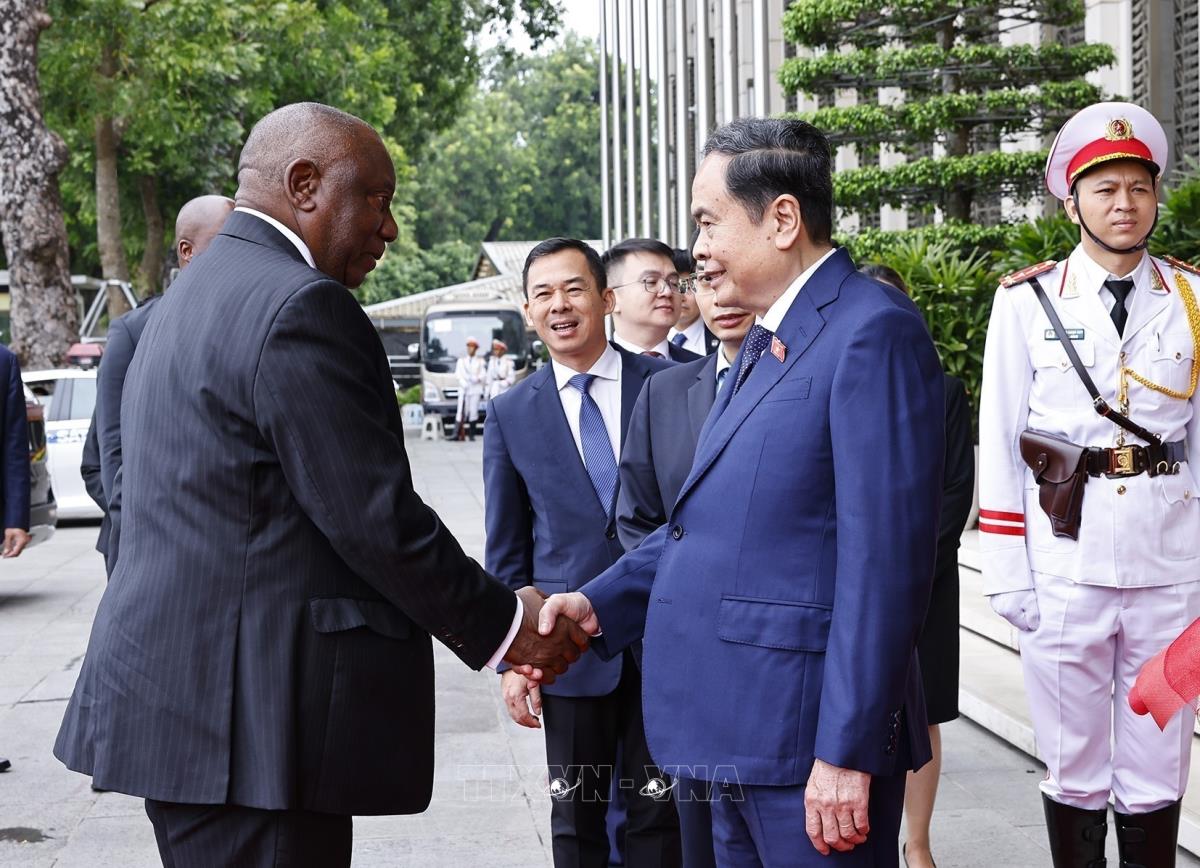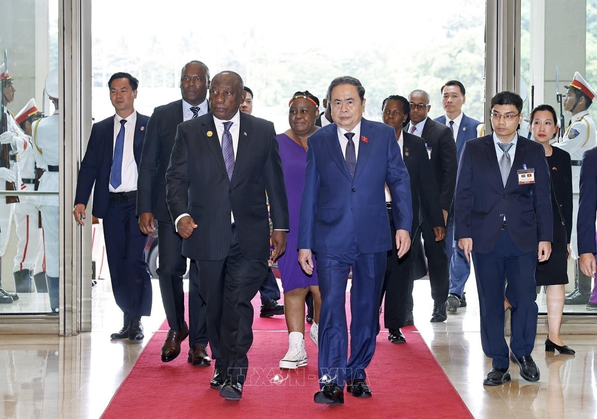 Chủ tịch Quốc hội Trần Thanh Mẫn đón Tổng thống Cộng hòa Nam Phi Matamela Cyril Ramaphosa thăm cấp nhà nước đến Việt Nam (24/10/2025). Ảnh: Doãn Tấn – TTXVN