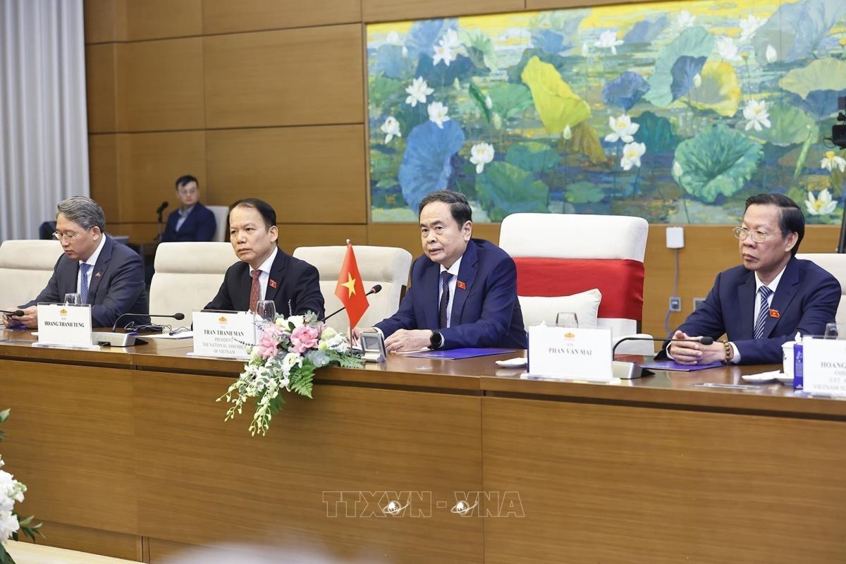 Chủ tịch Quốc hội Trần Thanh Mẫn hội kiến Tổng thống Cộng hòa Nam Phi Matamela Cyril Ramaphosa thăm cấp nhà nước đến Việt Nam (24/10/2025). Ảnh: Doãn Tấn – TTXVN