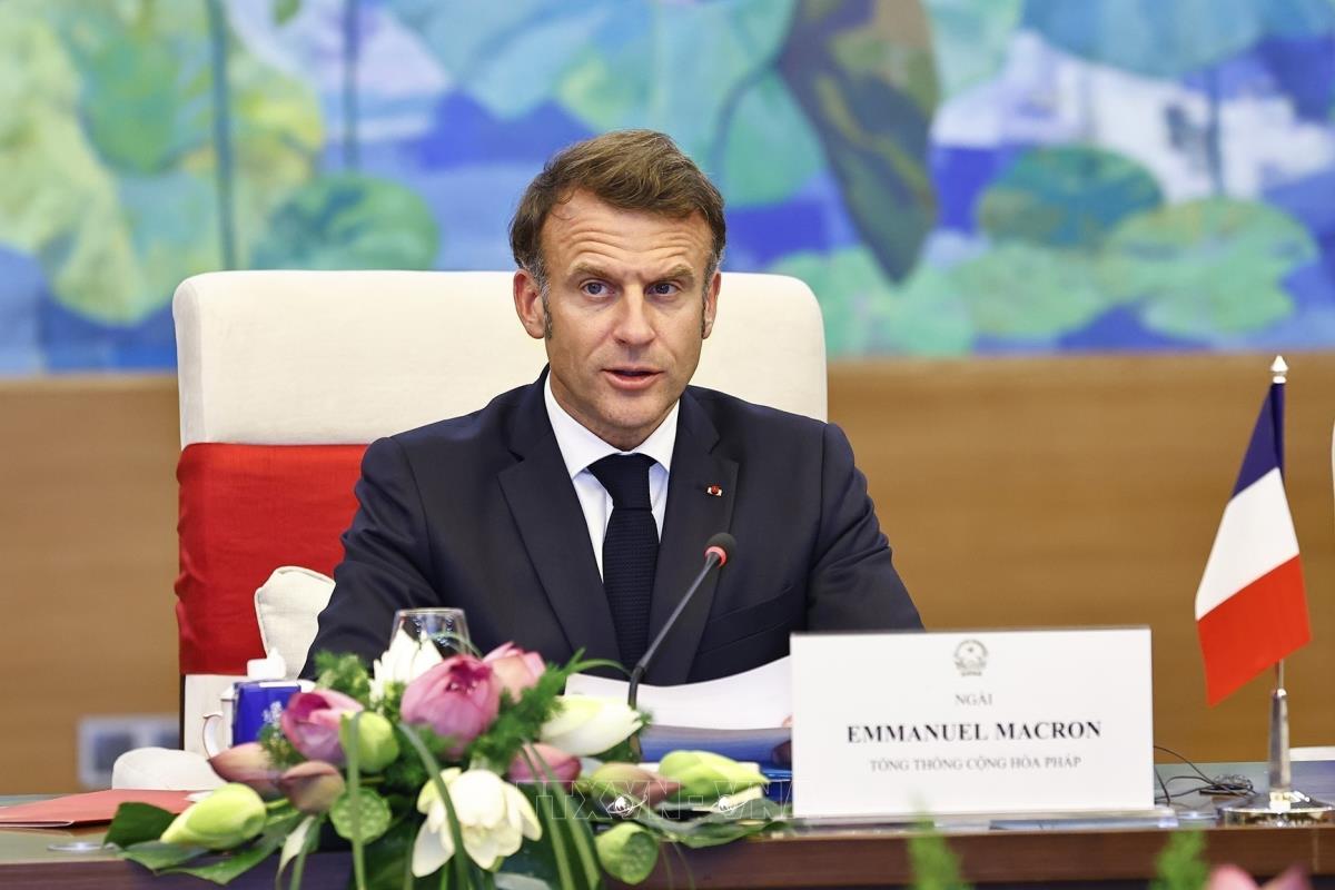 Tổng thống Pháp Emmanuel Macron phát biểu tại cuộc hội đàm (26/5/2025). Ảnh: Doãn Tấn – TTXVN