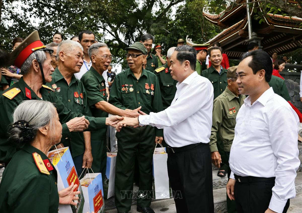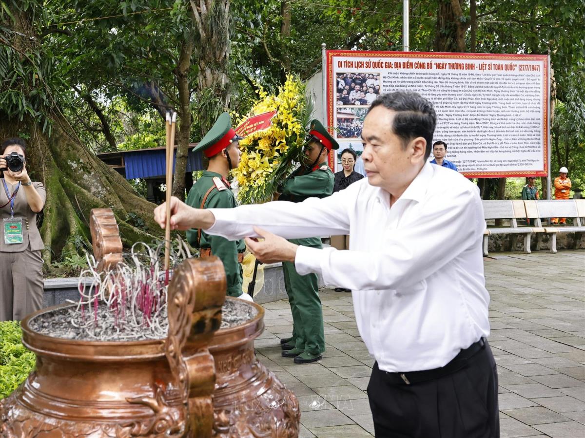 Hà Nội (TTXVN 20/7/2025) Nhân dịp kỷ niệm 78 năm Ngày Thương binh - Liệt sĩ (27/7/1947 – 27/7/2025), sáng 20/7/2025, Chủ tịch Quốc hội Trần Thanh Mẫn thăm, tặng quà gia đình chính sách, người có công với cách mạng tại Khu di tích lịch sử Quốc gia 27/7, tỉnh Thái Nguyên.