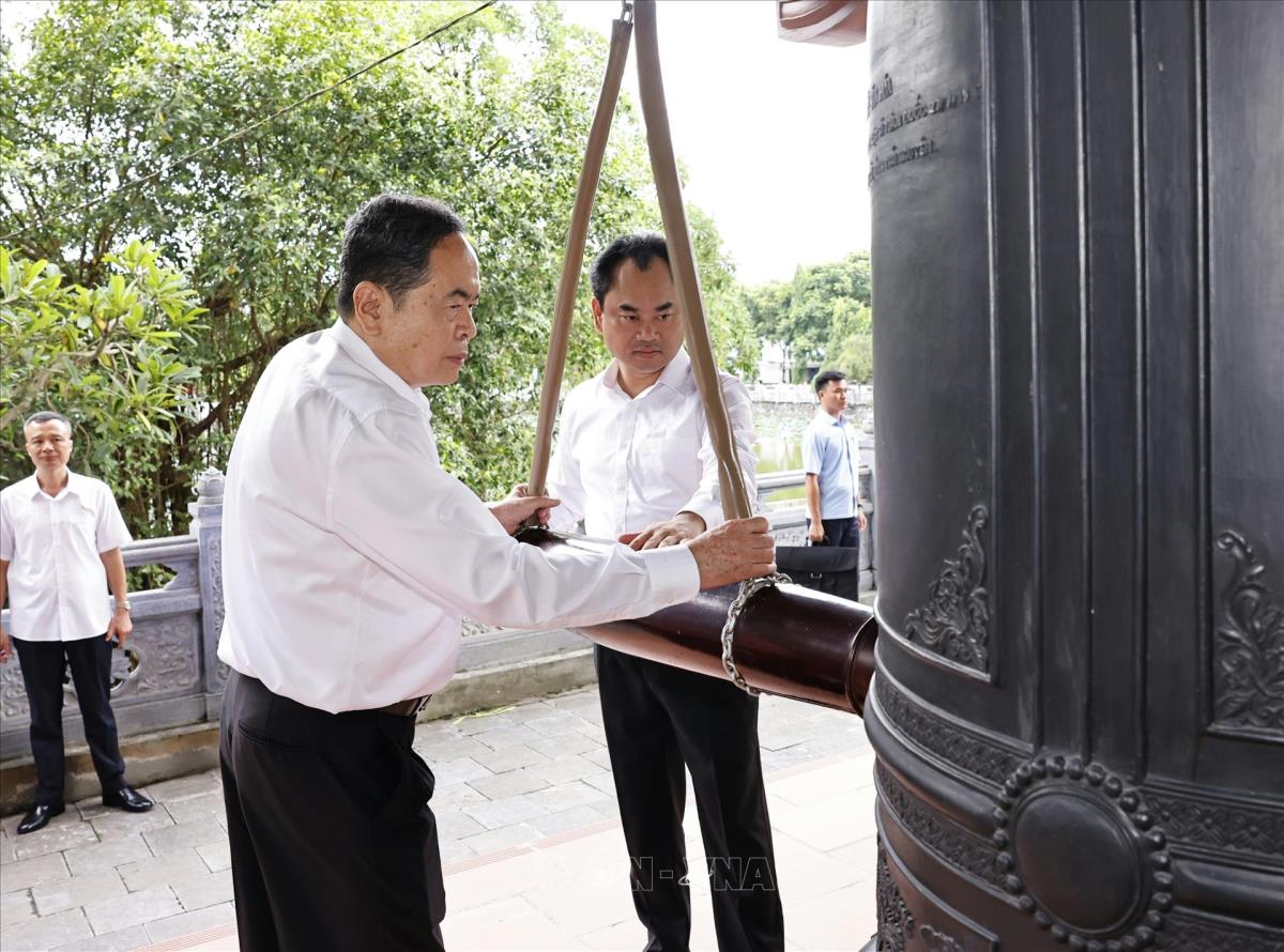 Chủ tịch Quốc hội Trần Thanh Mẫn thỉnh chuông tại Khu di tích lịch sử Quốc gia 27/7 (20/7/2025). Ảnh: Doãn Tấn - TTXVN